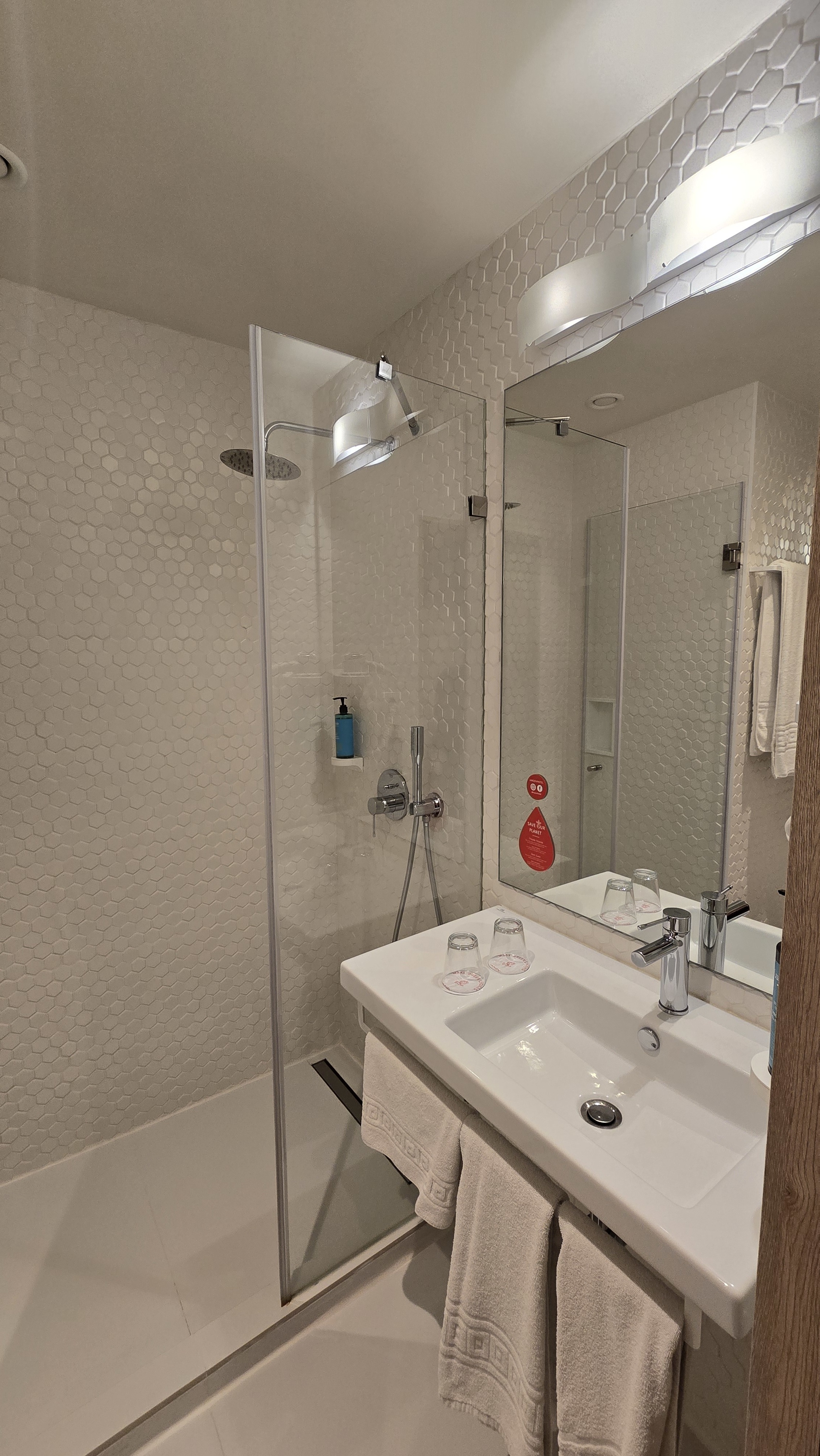 O quarto é espartano mas silencioso e muito confortável. A limpeza foi irrepreensível e a pressão do duche deu-nos um momento zen inesperado. Outro detalhe que adorámos: as portas abrirem com código. Não somos propriamente medricas, mas aquela camada extra de segurança sabe sempre bem. E já agora, pontos para o dispensador de água no corredor, que nos poupou a carregar garrafas e fez aquilo que parece simples mas nem sempre acontece: facilitar a vida a quem viaja.