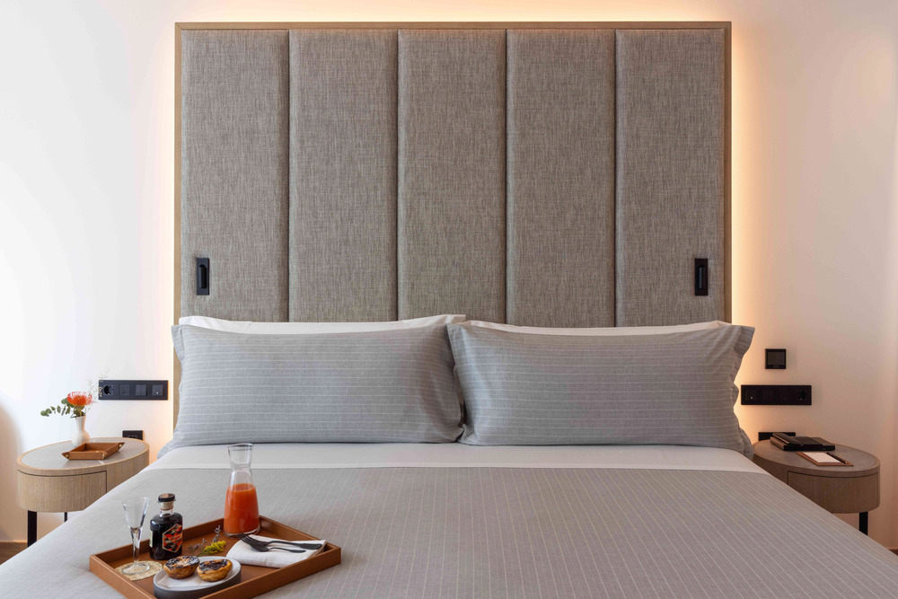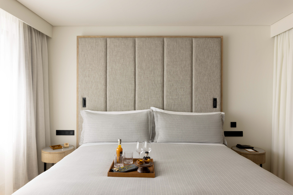 Ficámos instalados numa Suíte Beyond ME + (960€ de 12 para 13 de novembro, com snacks grátis, circuito de água no spa e transfer de e para o aeroporto em carro particular incluídos no preço), no 9º andar, com vista para a Avenida António Augusto Aguiar e o Parque Eduardo VII ao fundo. Este é o hotel de cinco estrelas citadino, cool e jovem que faltava a Lisboa, e essa irreverência subtil está presente em todos os pormenores, desde a decoração minimalista, pontuada de pormenores portugueses, como peças de criadores nacionais, até á aposta na sustentabilidade, como as pesadas cortinas de correr que bloqueiam a luz e o calor (e também o preservam) evitando assim o uso excessivo do ar condicionado.