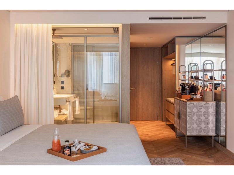 Outros pormenores que tornam o ME Lisbon, para lá do tom leve do nosso título, um lugar verdadeiramente especial: as fragrâncias personalizadas que perfumam o hotel estão disponíveis para compra no bar dos quartos e suítes. Mais do que uma simples máquina com café, o hotel tem café de cápsula personalizado, criado especialmente para os hóspedes do ME. Além de poder trazer o seu patudo sem custos extra, nas suítes o hotel oferece um kit pet friendly, com cama incluída.