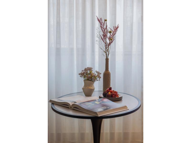 Das peças decorativas de Anna Westerlund, Oficina Marques e Elsa Rebelo ao painel de azulejos de Maria Ana Vasco Costa, no lobby, o ME Lisbon combina o espírito cosmopolita com as marcas de Lisboa. A curadoria de Guta Moura Guedes consubstancia-se na contemporaneidade das quatro obras de arte originais de Fernanda Fragateiro, Silvadesigners, Munnhouse e René Cruz Tavares, em locais-chave deste hotel de cinco estrelas. O laço que une estes elementos é cromático, o roxo dos jacarandás, a árvore que perfuma e pinta as ruas de Lisboa quando chega a primavera. Todos os dias, o videomapping projetado nas paredes muda, criando uma fluidez e personalidade mutável ao espaço.