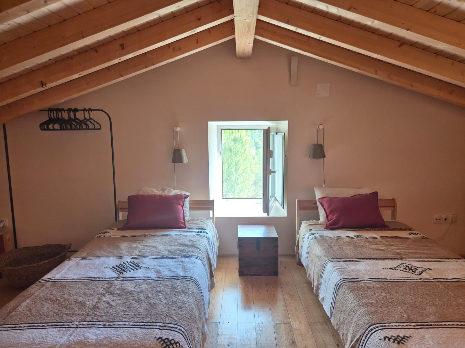 Há também um sótão, para caso de necessidade, para as camas extra. No exterior, os hóspedes encontram mais uma zona de refeições, esta com vista sobre o açude da Laranjeira, uma fogueira, um tanque (300x200) e espreguiçadeiras.