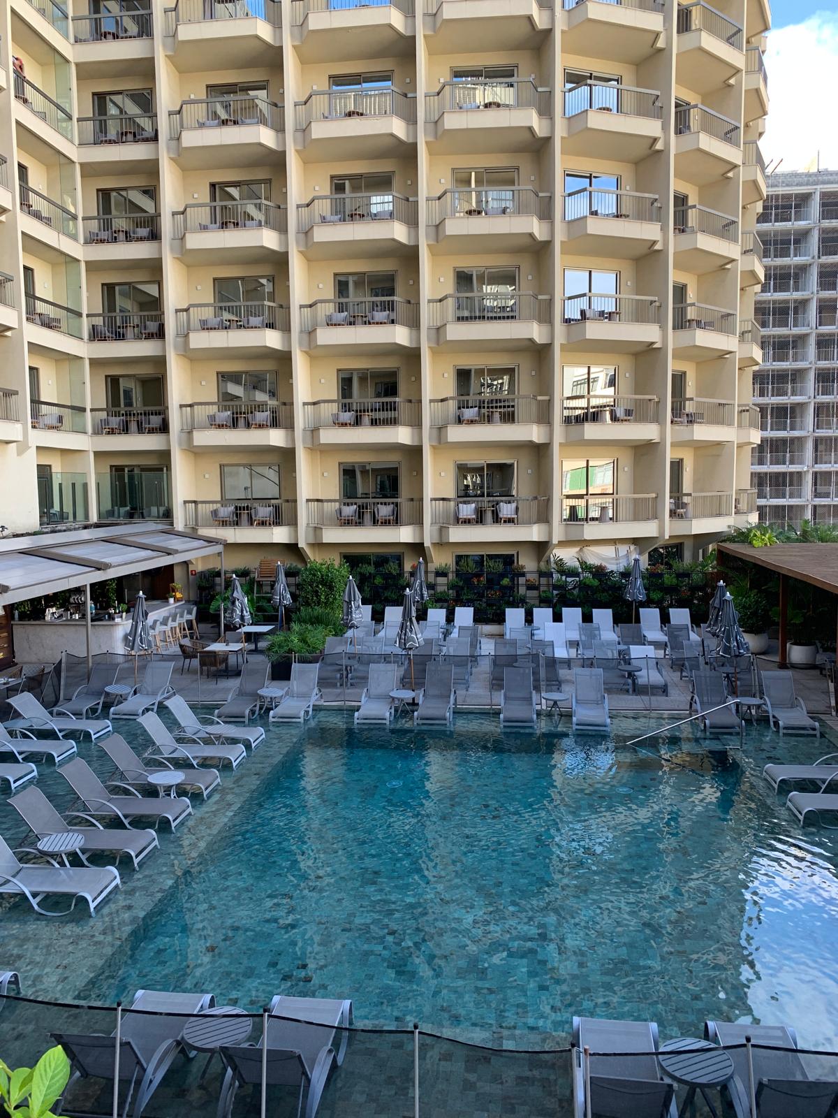 Todos os 375 quartos — 68 deles suítes — têm varanda. Ficámos num com vista para a Relaxing Pool, a piscina exterior numa zona mais resguardada e calma, rodeada de espreguiçadeiras. A outra, a Infinity Pool, fica de frente para a praia, e também dispõe de um lounge completo (que inclui alguns colchões).