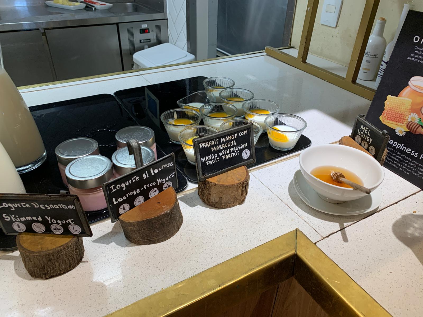 A opção de brunch, ideal para duas pessoas, custa cerca de 30€ e inclui um parfait de manga, três panquecas (com toppings à escolha, como mel, banana e chocolate), ovos mexidos, dois croissants com geleia e manteiga e duas bebidas (uma quente à escolha e um sumo natural de laranja).