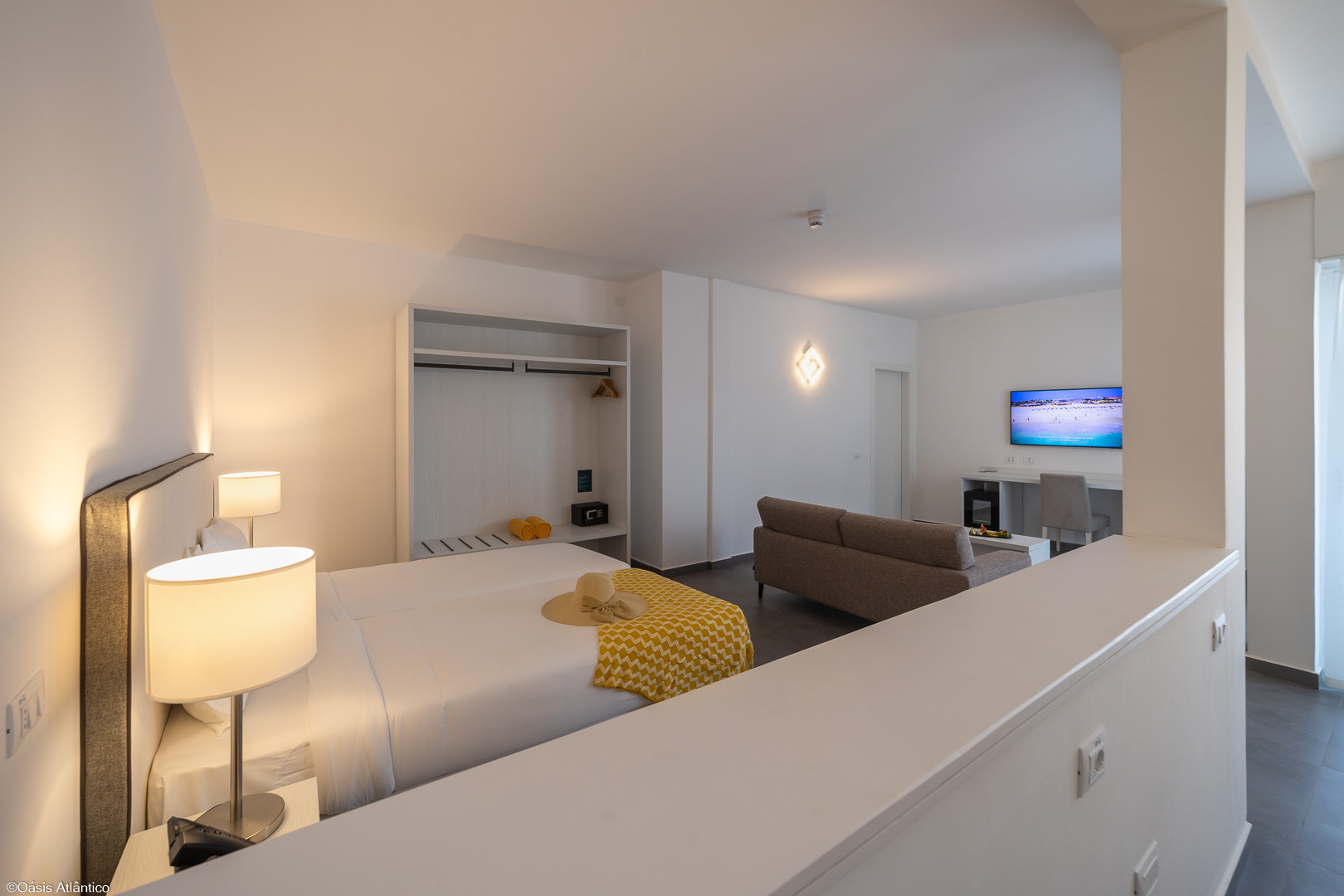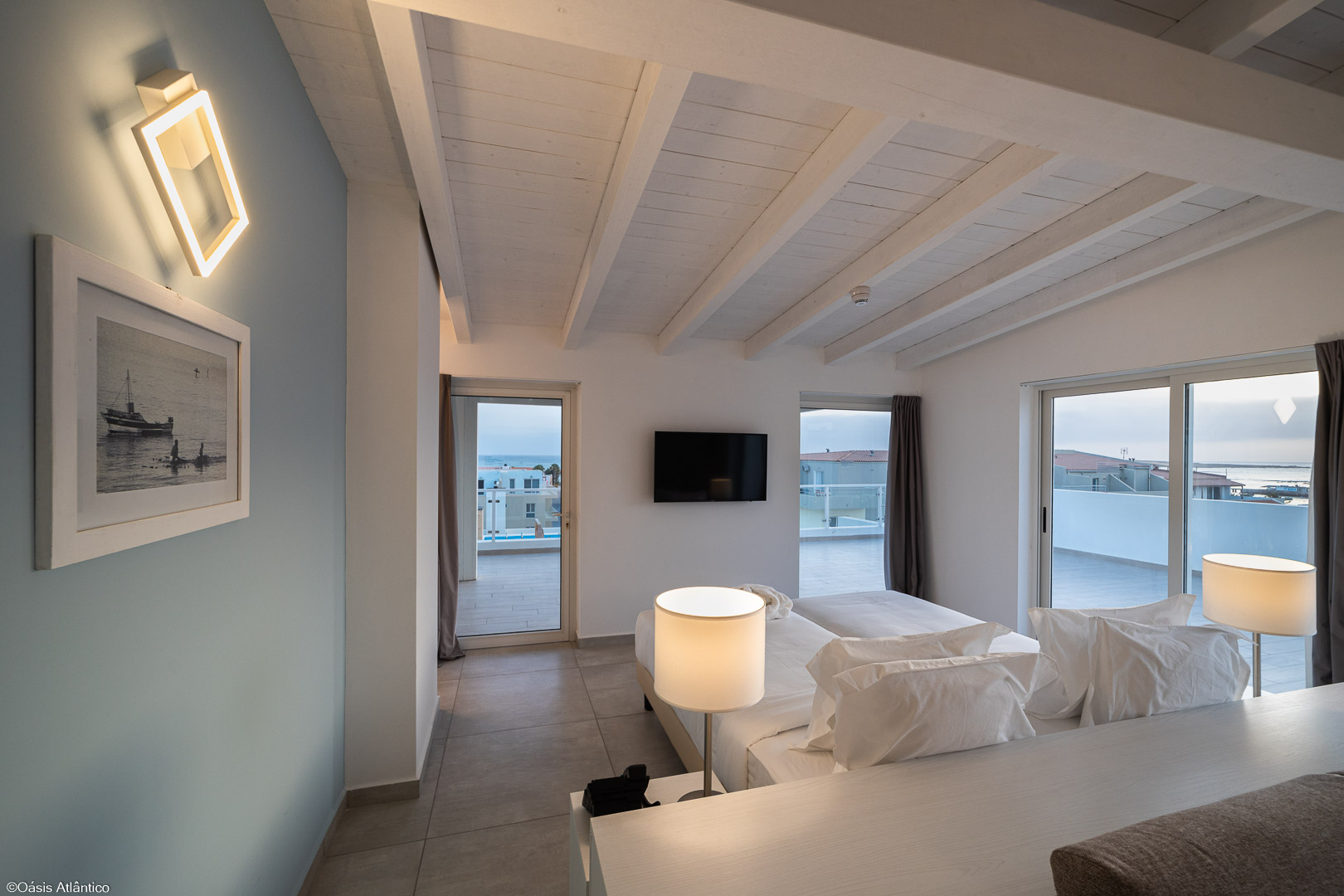 A unidade foi a nona do grupo Oásis Atlântico a abrir e a estreia na Boa Vista. A fazer jus ao nome do hotel, o branco é predominante por todo o espaço, com uns toques de azul turquesa, sendo o estilo clean uma aposta clara numa estética contemporânea, sem perder a ligação com a paisagem da ilha.