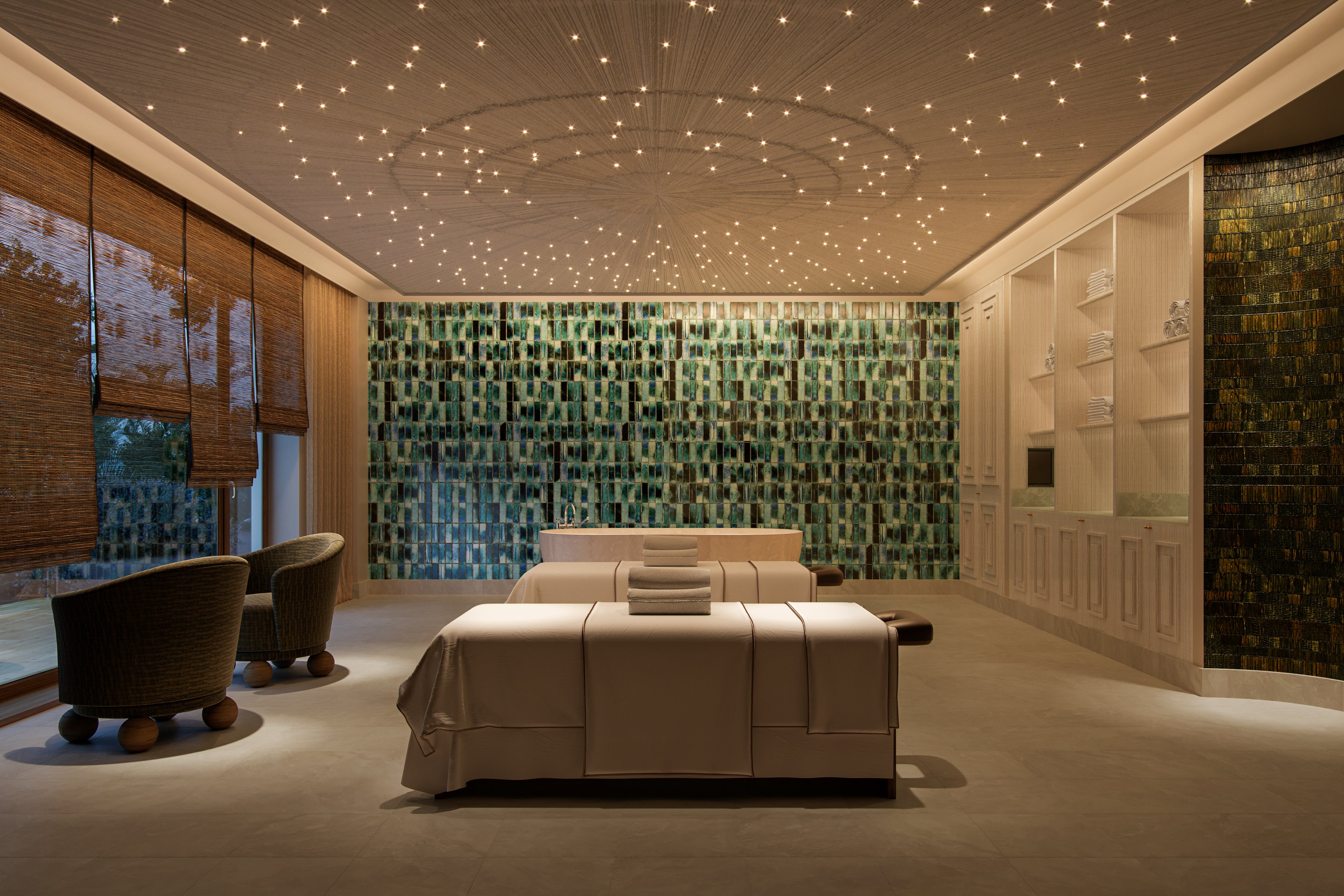 O bem‑estar também foi pensado ao pormenor. O spa combina filosofias orientais com tradições mediterrânicas, oferecendo tratamentos exclusivos em nove cabines, incluindo suítes para casais, além de experiências de calor e água, massagens e um ambiente pensado para rejuvenescimento total. O hotel dispõe também de piscinas interiores e exteriores com vista mar, um centro de fitness completo e programas de actividades ao ar livre para equilibrar repouso e exploração da ilha.
