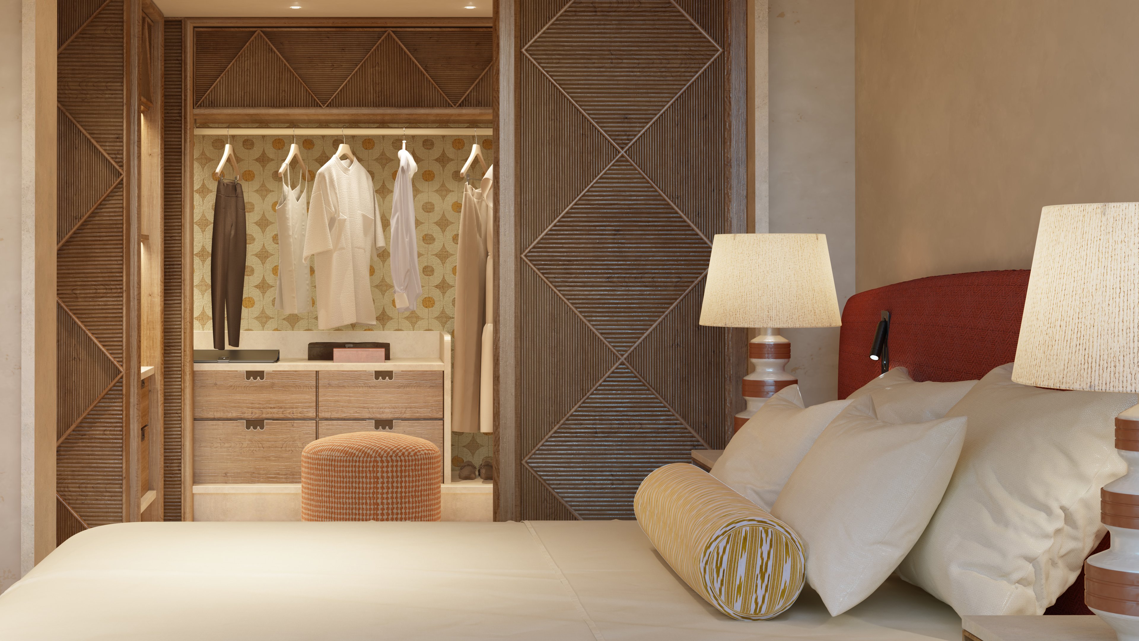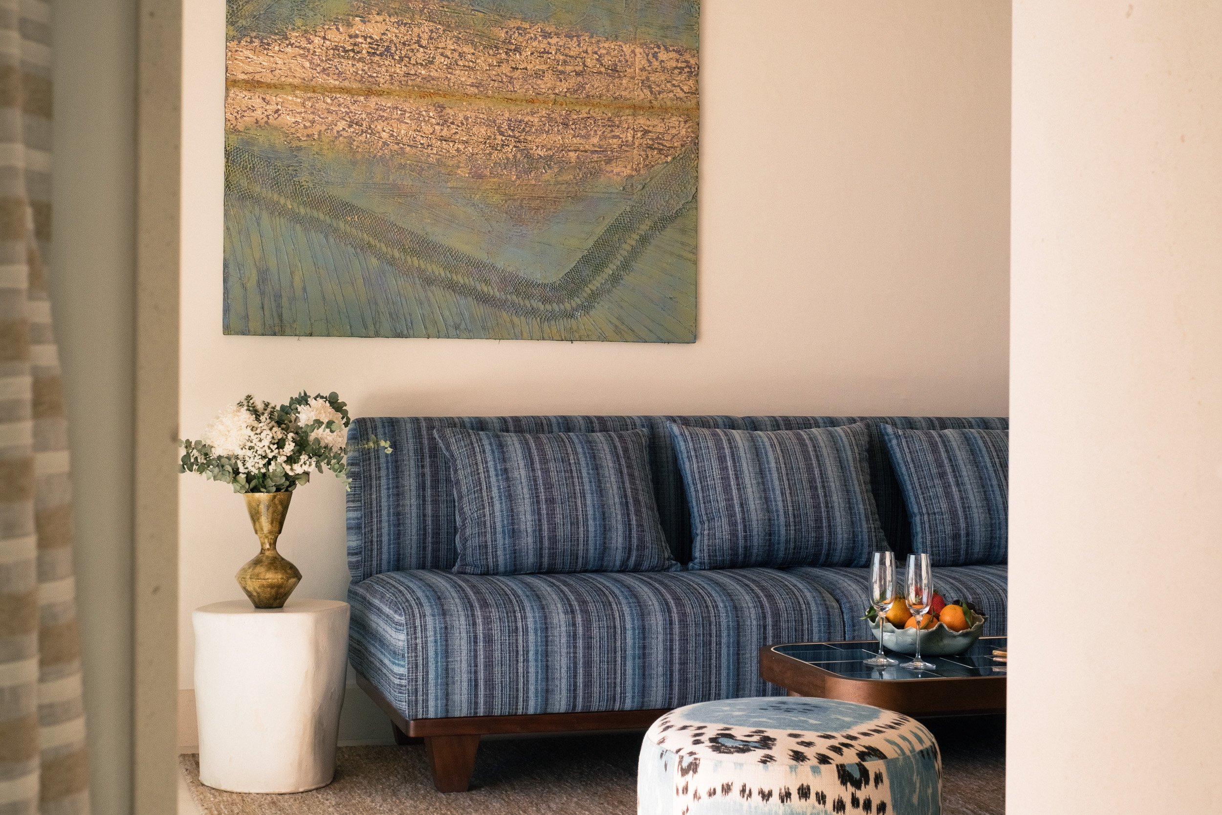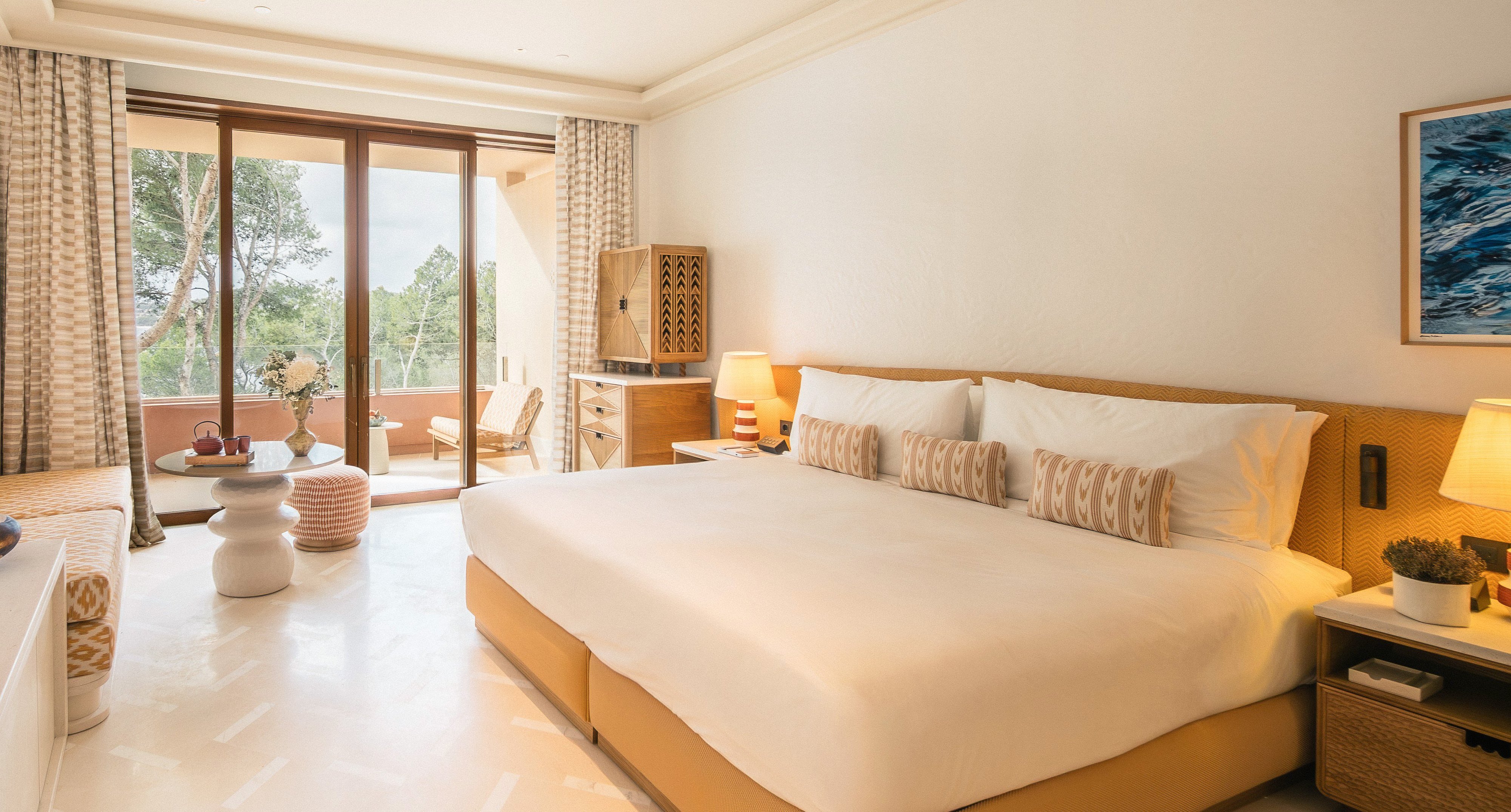 Cada espaço do hotel foi desenhado para capturar a serenidade do mar e do pinhal mediterrânico, com paleta de tons suaves, pedra trabalhada à mão e peças de arte selecionadas de artistas locais e internacionais. Entre as opções de alojamento encontram‑se suítes com piscinas privadas e rooftop suites, perfeitas para quem procura uma experiência exclusiva.