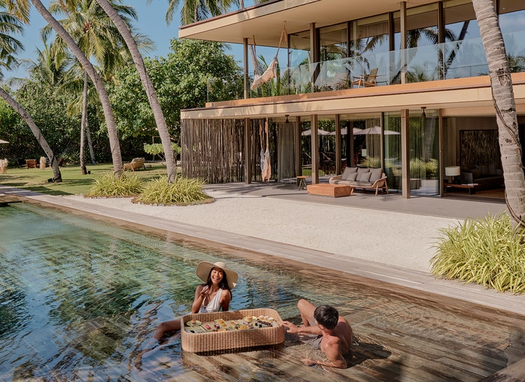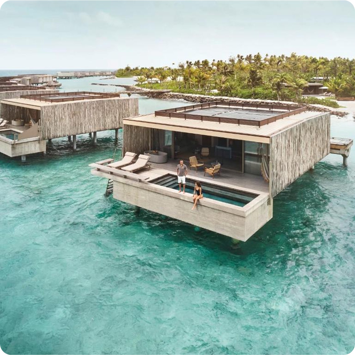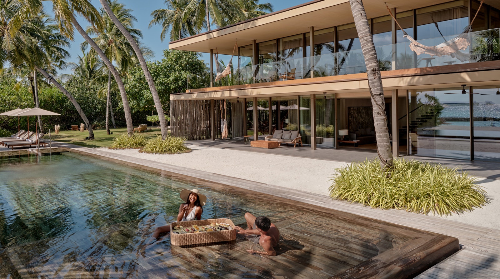 O resort oferece diversas tipologias de alojamento, pensadas para casais e famílias que procuram uma experiência íntima e exclusiva. Uma das opções mais populares é a One Bedroom Beach Pool Villa, com cerca de 240 m² de espaço, acesso direto à praia, piscina privada e ambiente de jardim tropical — ideal para uma estadia romântica. Existem também villas sobre a água, como a One Bedroom Water Pool Villa, que proporcionam uma experiência ainda mais envolvente com a paisagem oceânica .