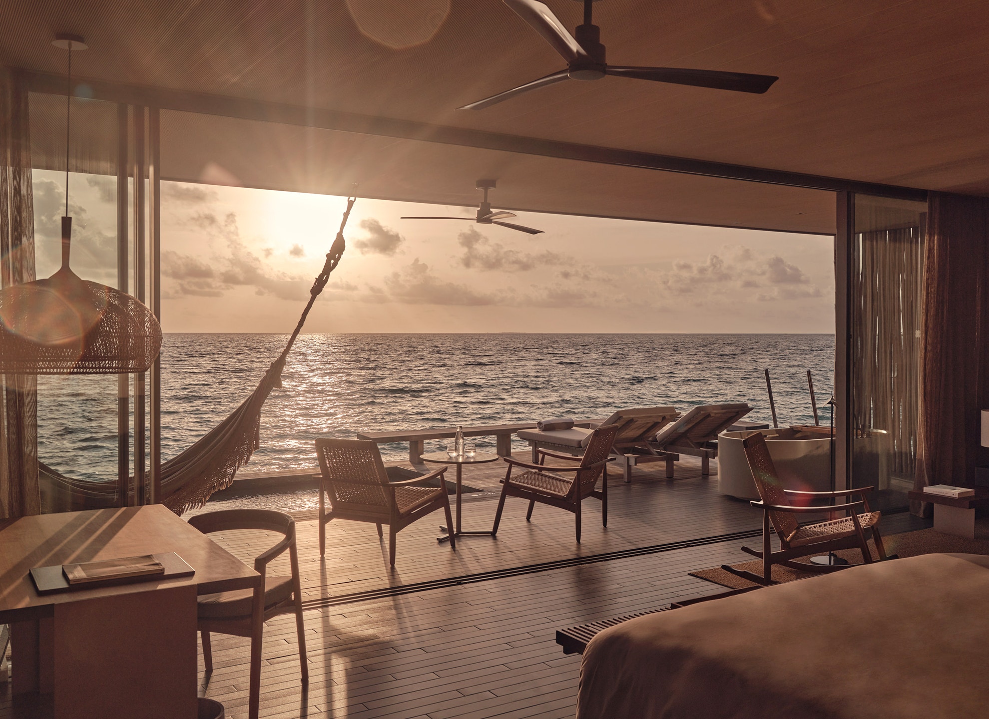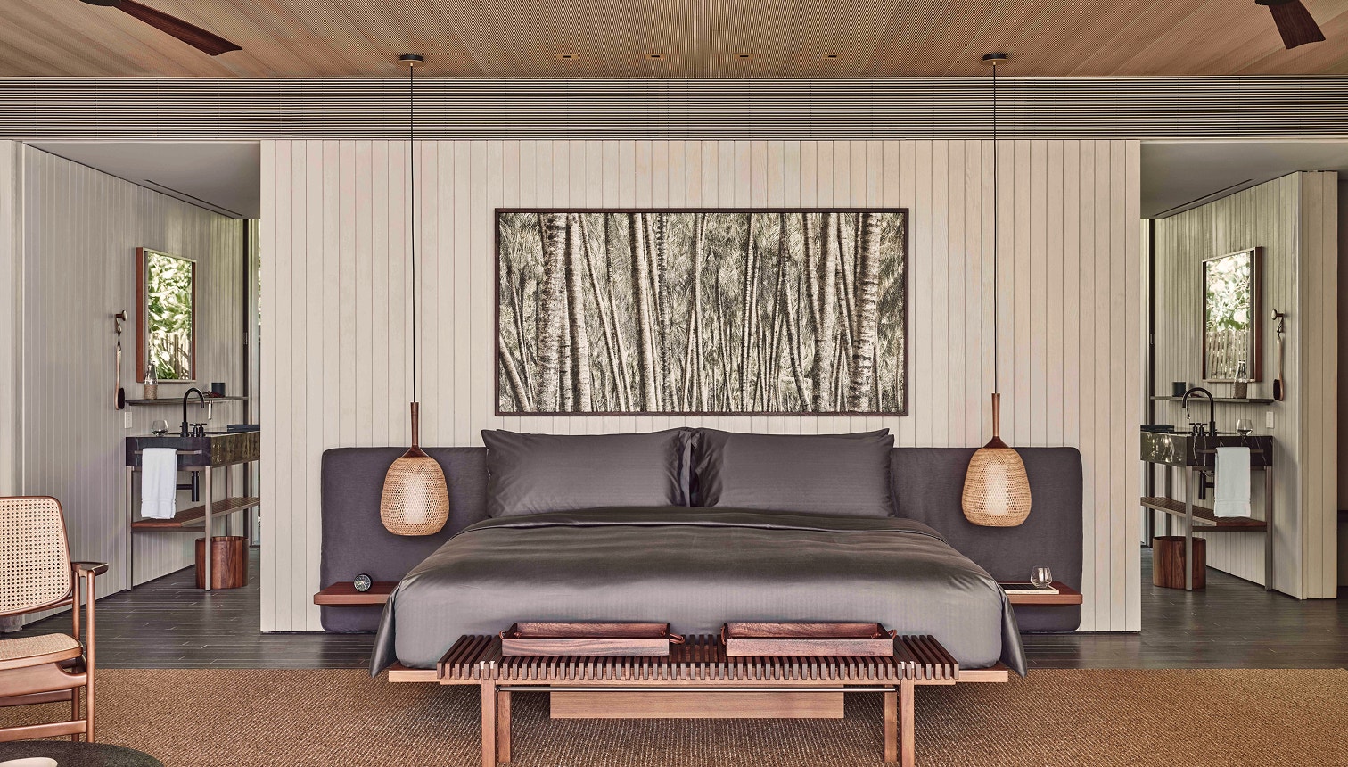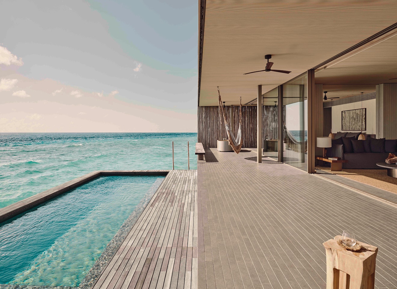 O resort oferece diversas tipologias de alojamento, pensadas para casais e famílias que procuram uma experiência íntima e exclusiva. Uma das opções mais populares é a One Bedroom Beach Pool Villa, com cerca de 240 m² de espaço, acesso direto à praia, piscina privada e ambiente de jardim tropical — ideal para uma estadia romântica. Existem também villas sobre a água, como a One Bedroom Water Pool Villa, que proporcionam uma experiência ainda mais envolvente com a paisagem oceânica .