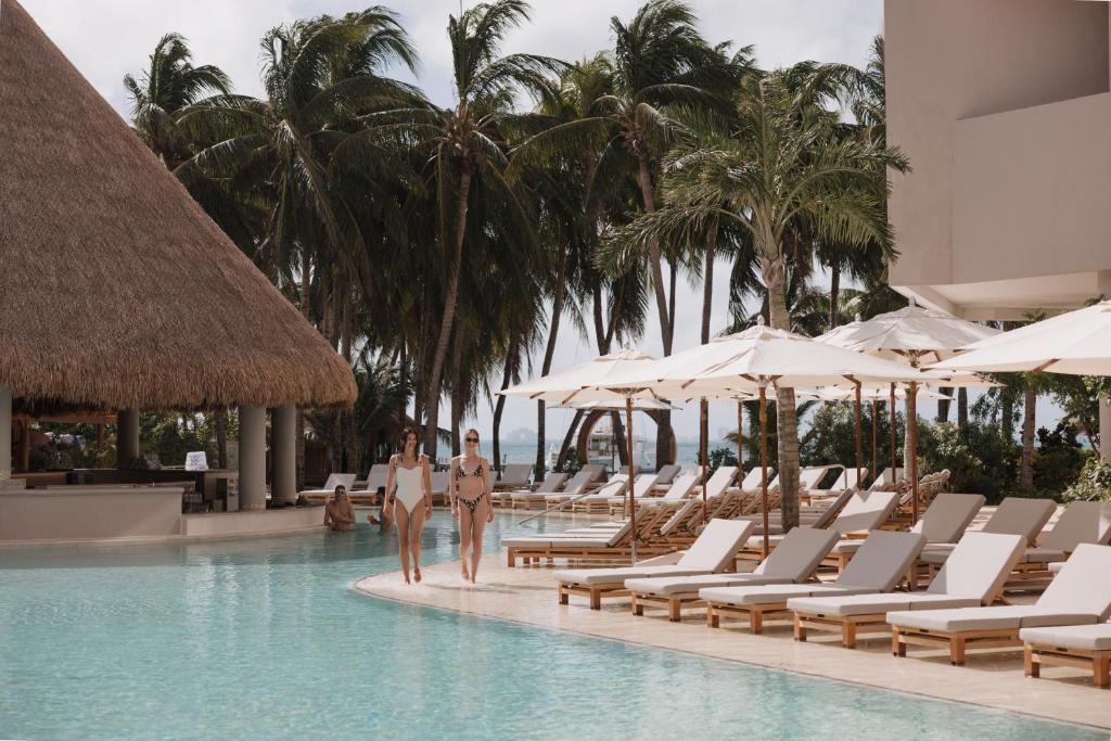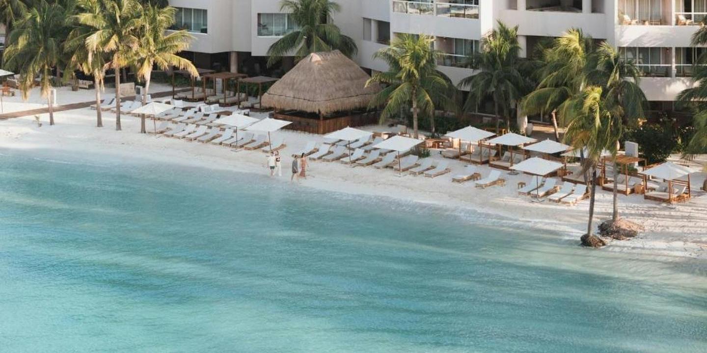 Tudo isto com regime de tudo incluído — restaurantes, piscinas, spa, ginásio e ainda experiências organizadas pela equipa, como caminhadas ao nascer do sol em Punta Sur ou passeios de barco pelas águas cristalinas de Playa Norte. Os preços começam nos 510€ por noite.