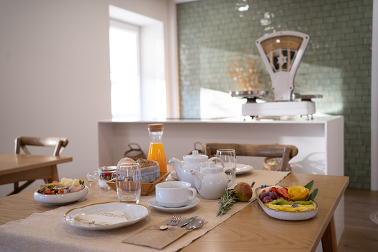 Ao pequeno-almoço, servido com vista para a serra, a mesa enche-se de produtos regionais: pães e compotas caseiras, bolos feitos na hora e, claro, o famoso mel da Serra do Caramulo. Há também um bar típico com esplanada, onde se podem provar petiscos locais, e uma loja de produtos regionais com mel, pólen e própolis produzidos pela própria marca Beecaramulo.