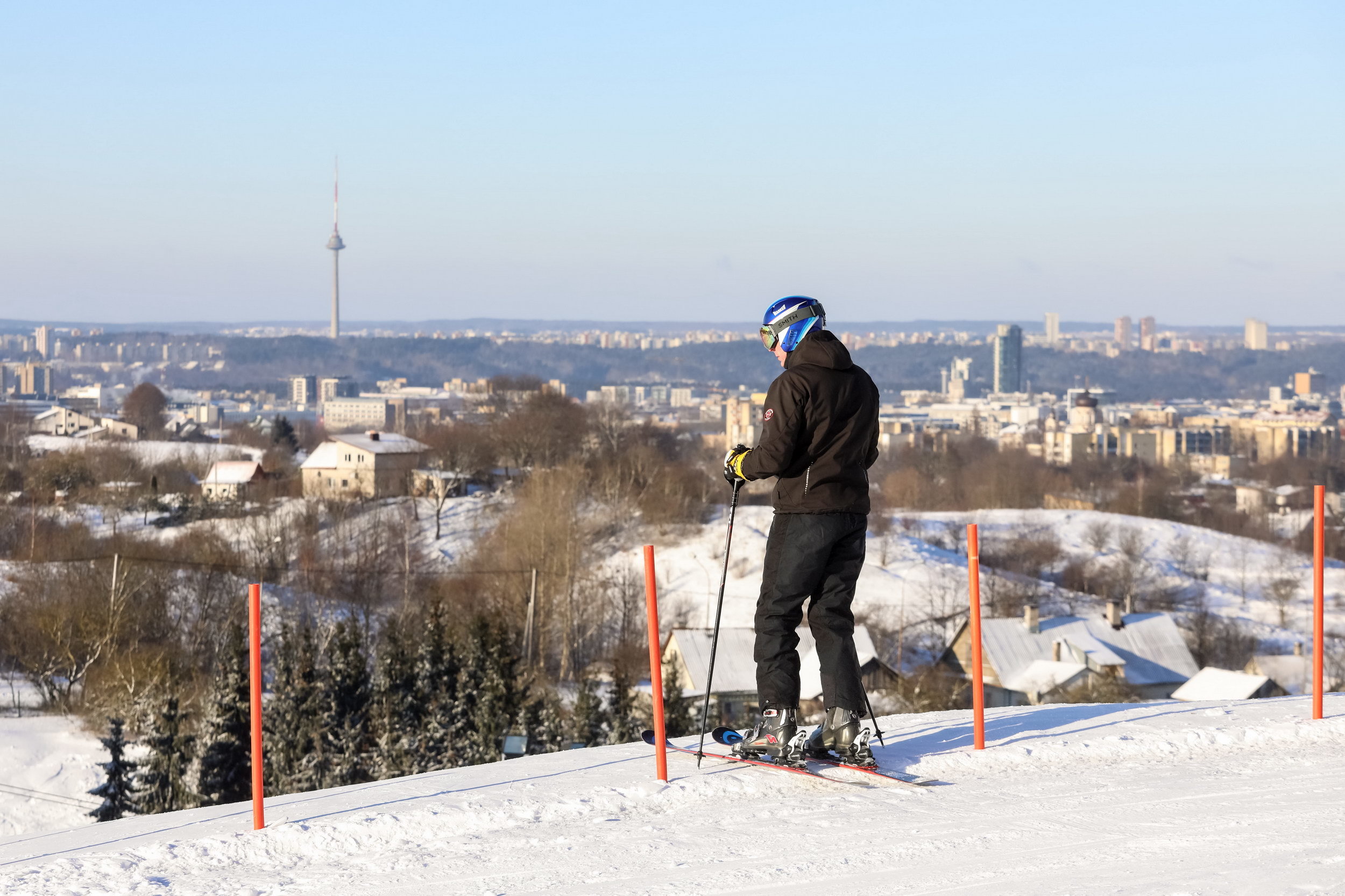 Vilnius é uma das poucas capitais europeias com pistas de esqui a menos de 10 minutos da Cidade Velha. O Liepkalnis Ski Park tem 2,6 quilómetros de pistas para todos os níveis, incluindo nocturno e parque de obstáculos para praticantes de freestyle, com vistas sobre o centro histórico e a floresta coberta de neve. Para quem prefere patinar, o lago de Trakai, a 34 minutos de comboio, combina gelo e castelo medieval.