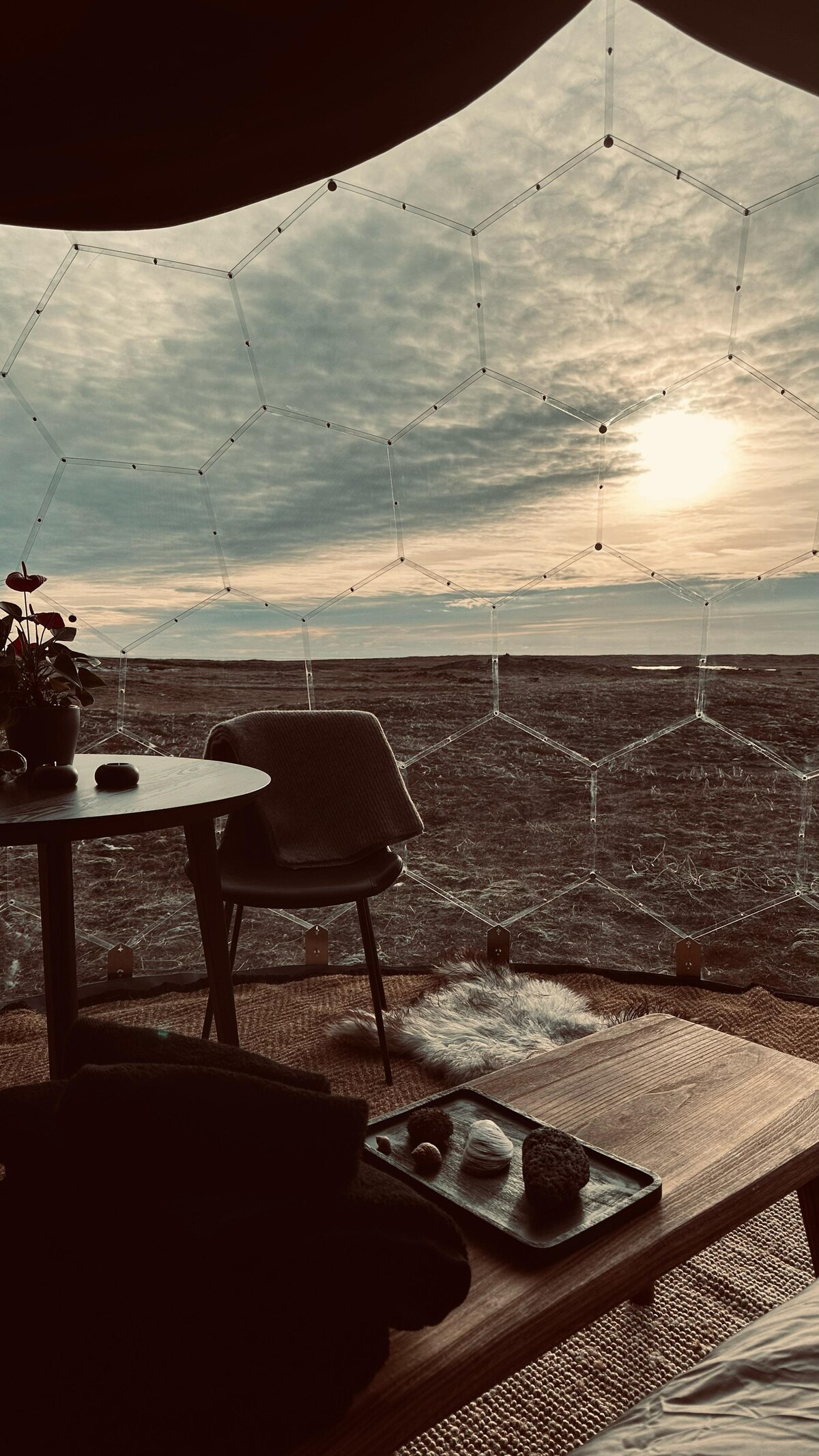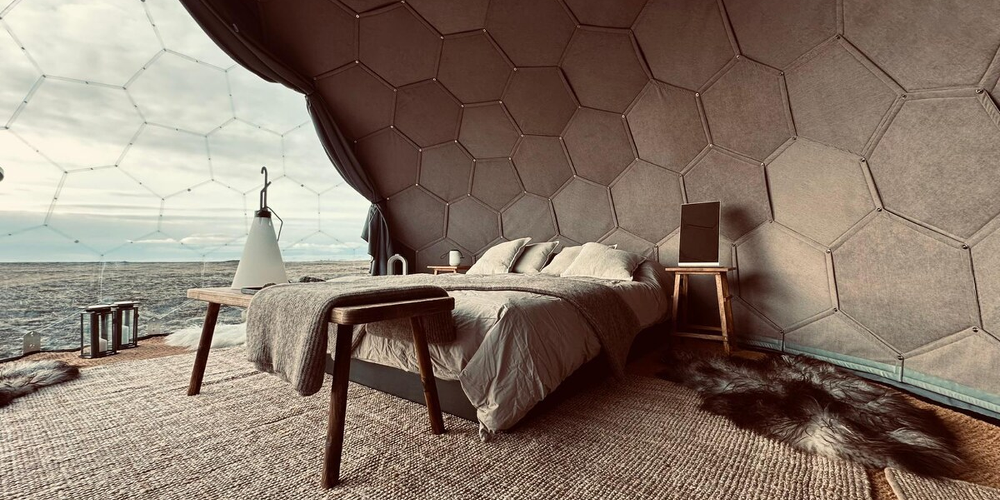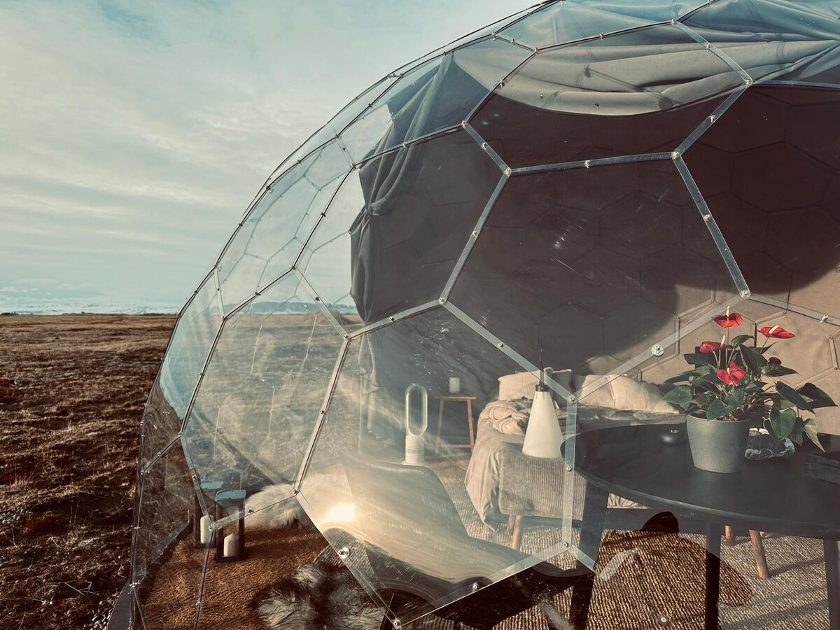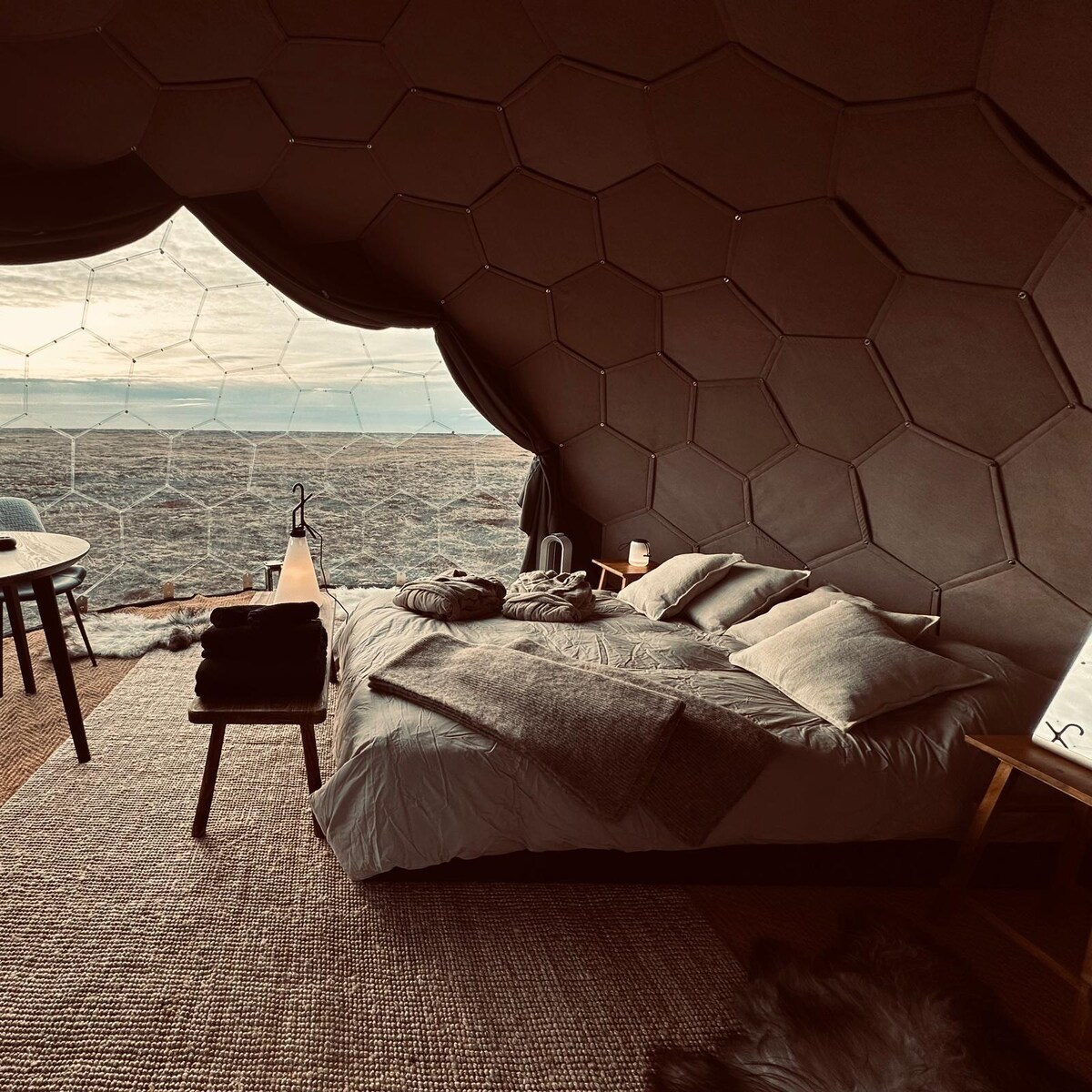 Situada em Stokkseyri, uma pequena vila costeira a cerca de 80 quilómetros de Reiquiavique, esta cúpula foi pensada para duas pessoas e é perfeita para uma escapadinha romântica ou para quem procura uma experiência diferente e isolada, longe da confusão das cidades. A estrutura, construída sobre uma propriedade privada junto ao mar, oferece vistas deslumbrantes em qualquer direção e é um dos locais ideais para observar o fenómeno das auroras boreais, especialmente durante os meses de inverno.