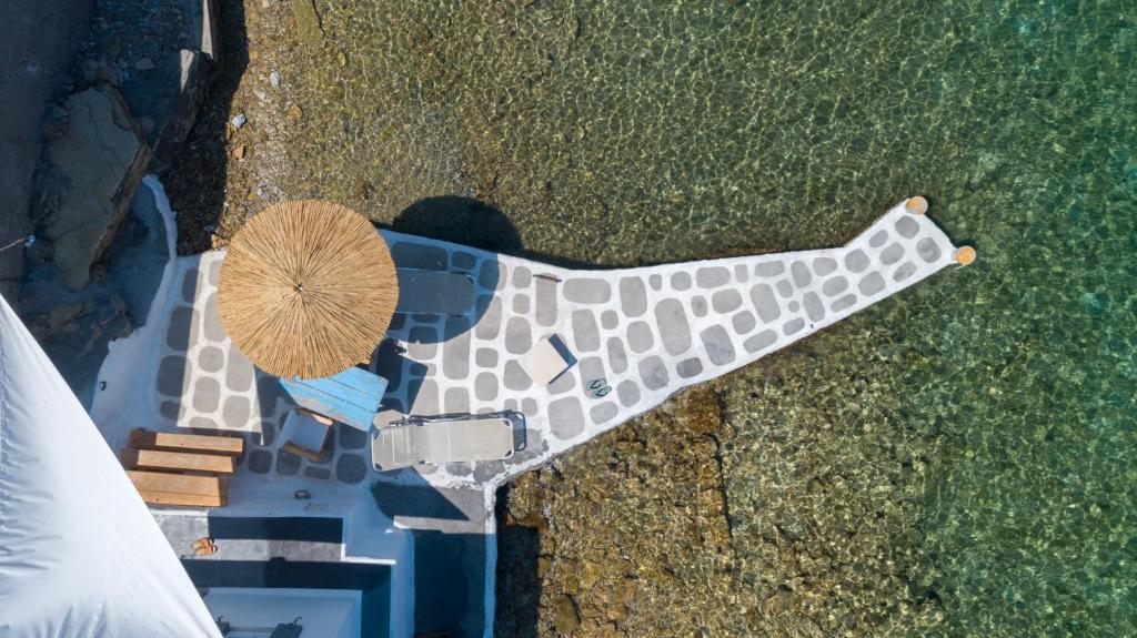 Com cerca de 30 metros quadrados, o alojamento dispõe de um quarto confortável, casa de banho, cozinha equipada e um terraço privado com vista panorâmica para o mar cristalino do Egeu. Ideal para casais ou viajantes que querem fugir à agitação, o On The Rocks proporciona contacto direto com a natureza, a apenas 80 metros da praia.