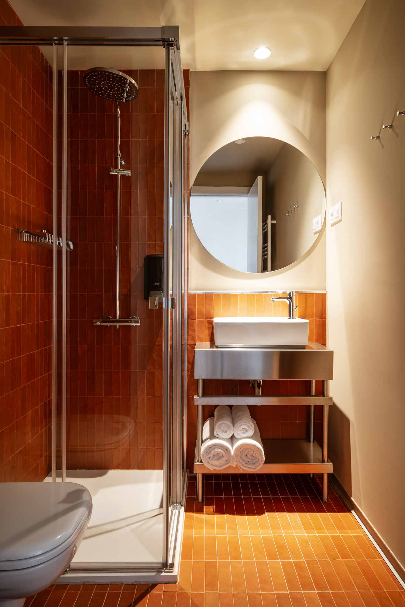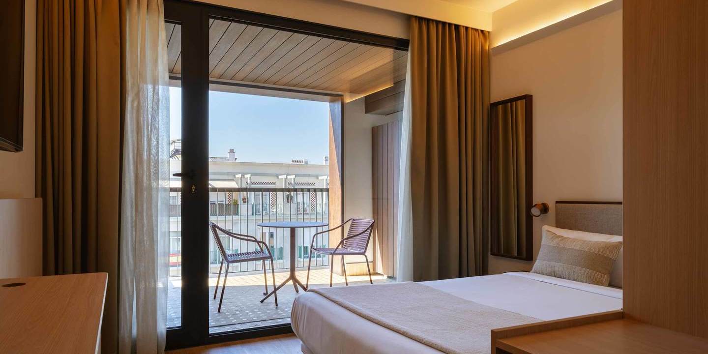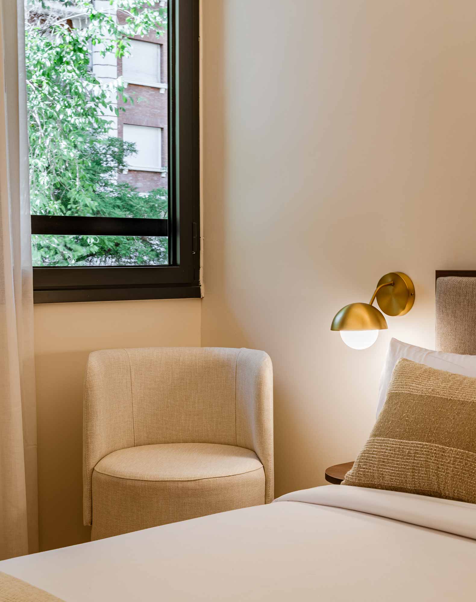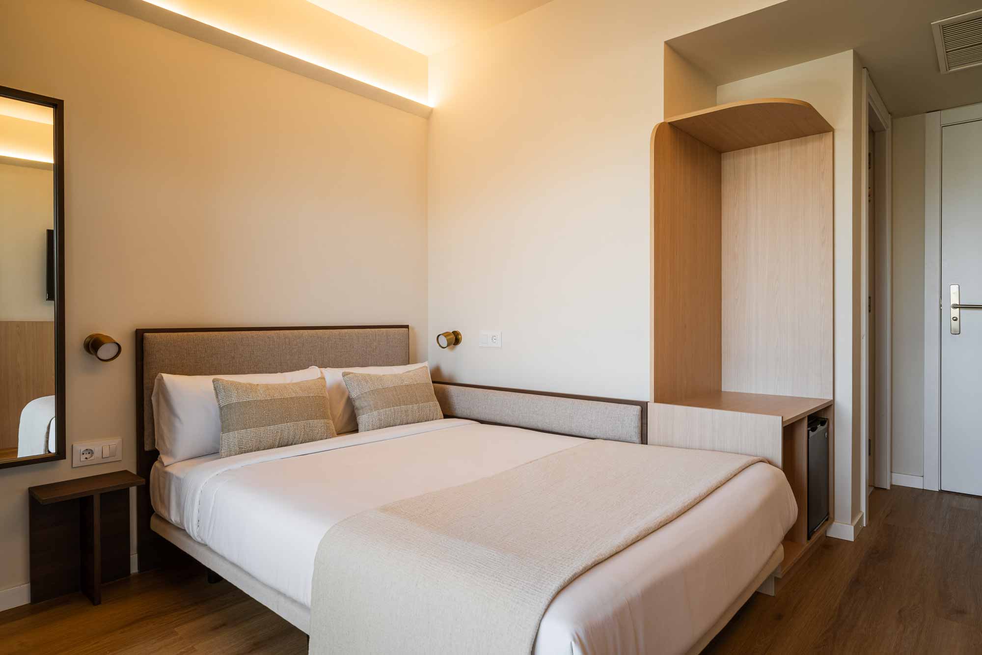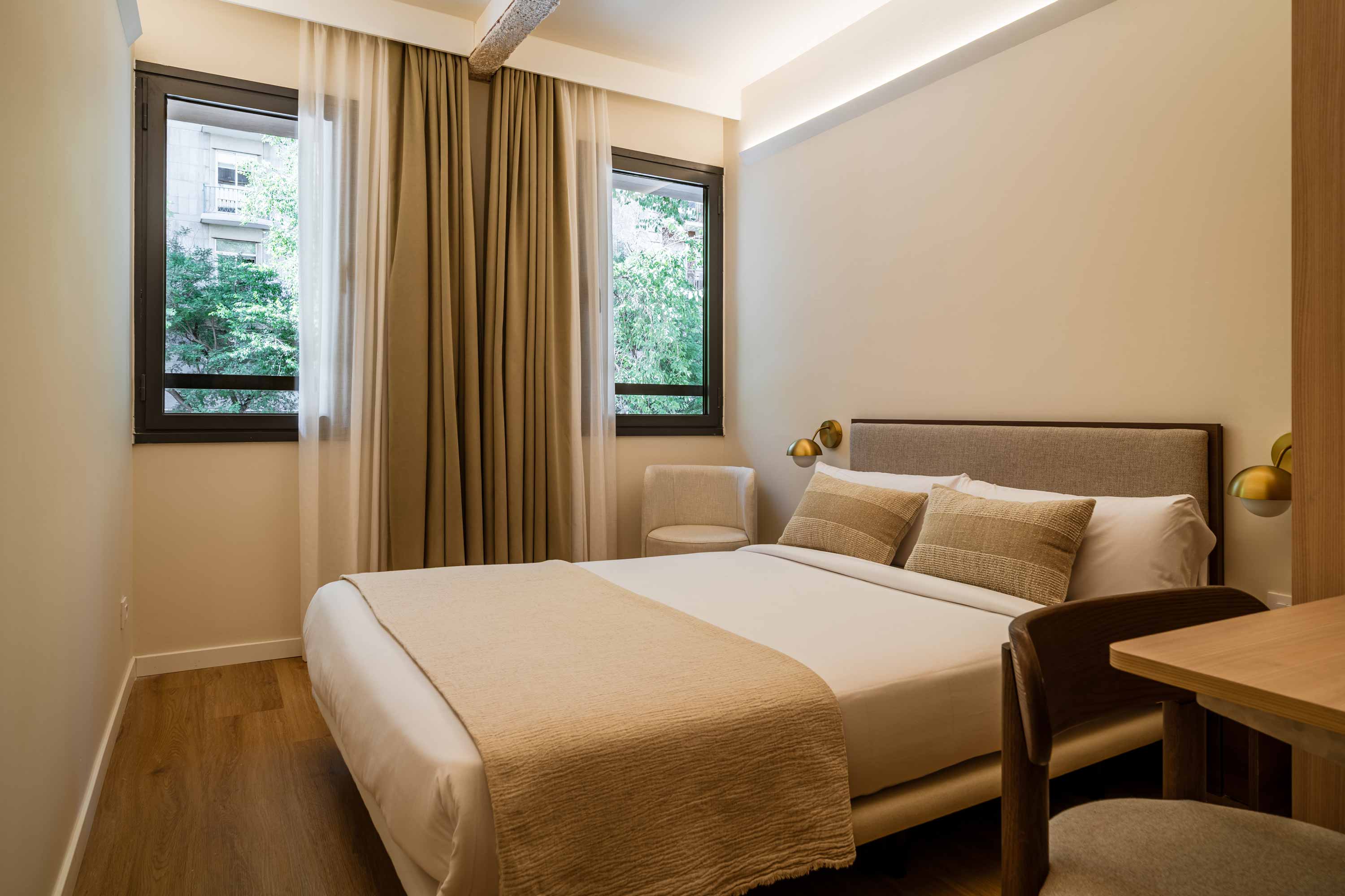 A grande mais-valia está mesmo nas opções de alojamento. O Compact Single, com cama individual e casa de banho partilhada, foi pensado para uma só pessoa. Simples, funcional e com tudo o que é essencial, custa desde 95 € por noite, um valor raro num dos bairros mais cobiçados de Madrid. O hotel dispõe ainda de 118 quartos de várias tipologias — alguns com varanda e casa de banho privativa —, para quem prefere espaço extra (ou companhia).