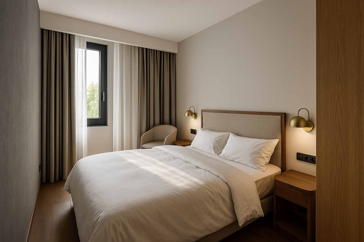 Localizado na Calle Alcalá, em pleno bairro de Salamanca, o Atipico Madrid é um hotel moderno, prático e cheio de estilo — perfeito para quem viaja sozinho, mas não quer abrir mão do conforto. O design é minimalista, as linhas limpas e os tons neutros criam um ambiente sereno, e há uma sensação de calma que contrasta com o ritmo da cidade lá fora.