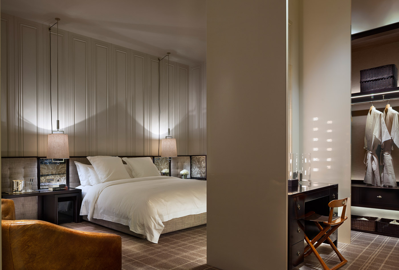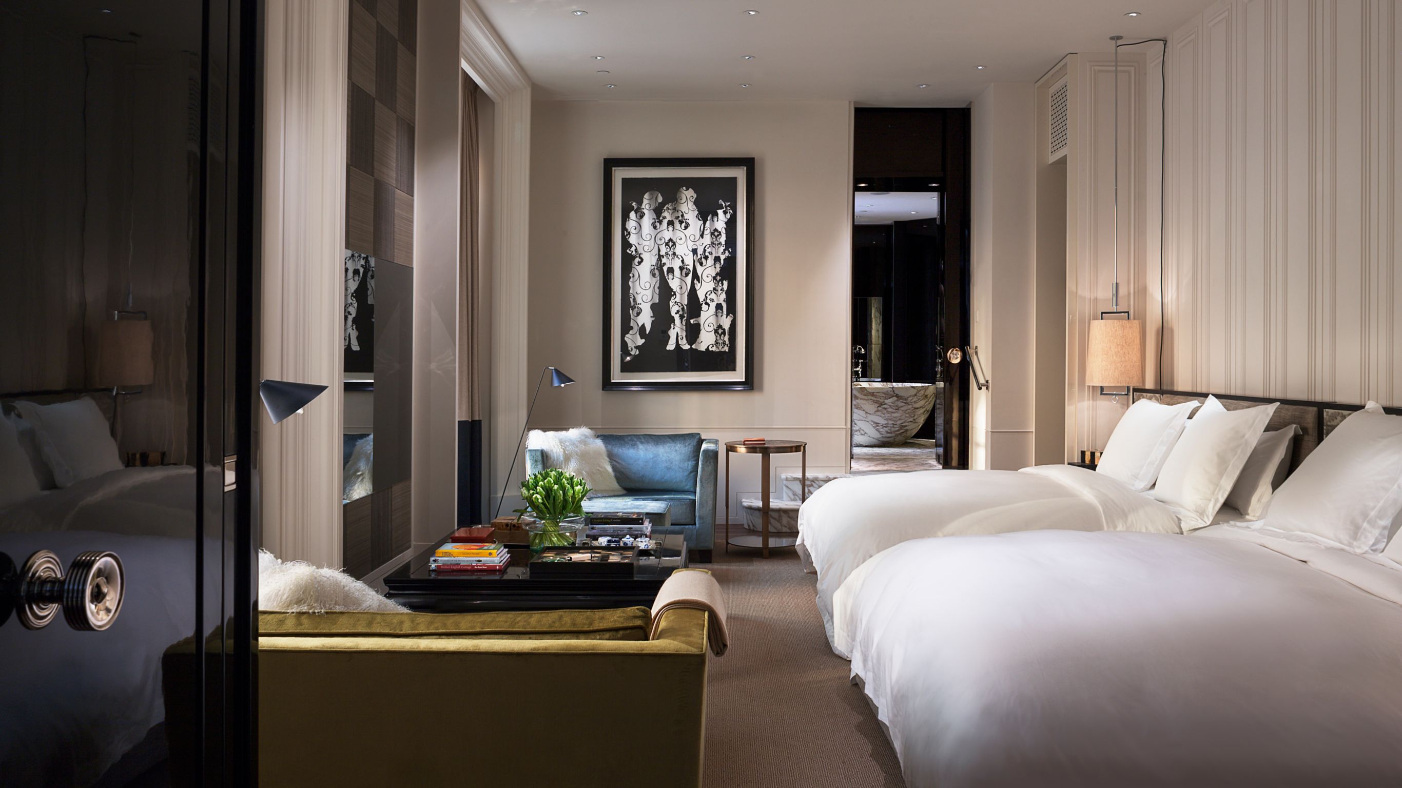 A residência inclui sete quartos, seis casas de banho completas e três de serviço, além de uma ampla sala de estar, biblioteca, sala de jantar com mesa para 10 pessoas e cozinha de apoio. A suíte principal conta com banheira em mármore, duche walk-in, lavatórios duplos e toalhas aquecidas — a famosa banheira onde Swift foi fotografada é uma das mais icónicas do hotel.