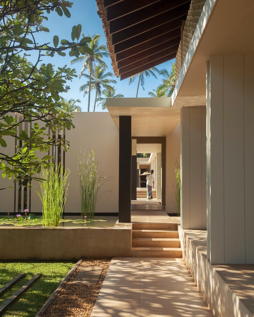 Inspirado no modernismo tropical do arquiteto Geoffrey Bawa, o Amanwella aposta num design minimalista, materiais naturais e numa integração discreta na envolvente. Além da praia praticamente intocada, o resort propõe uma experiência centrada no bem-estar, na gastronomia com produtos locais e em atividades ligadas à natureza do sul do Sri Lanka, numa lógica de descanso e desaceleração total.
