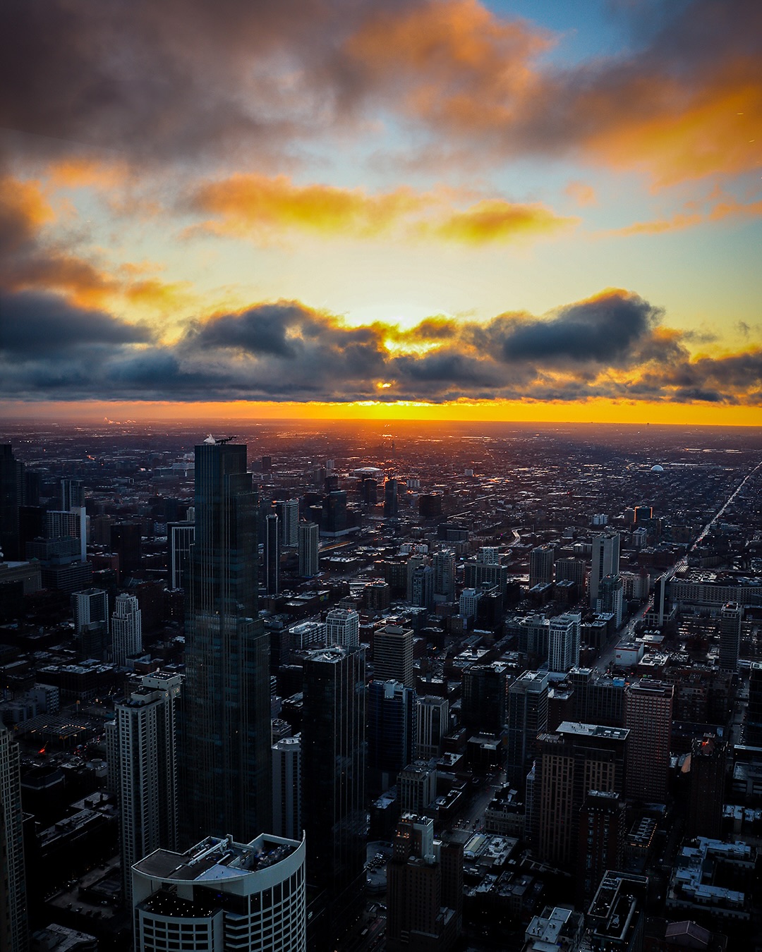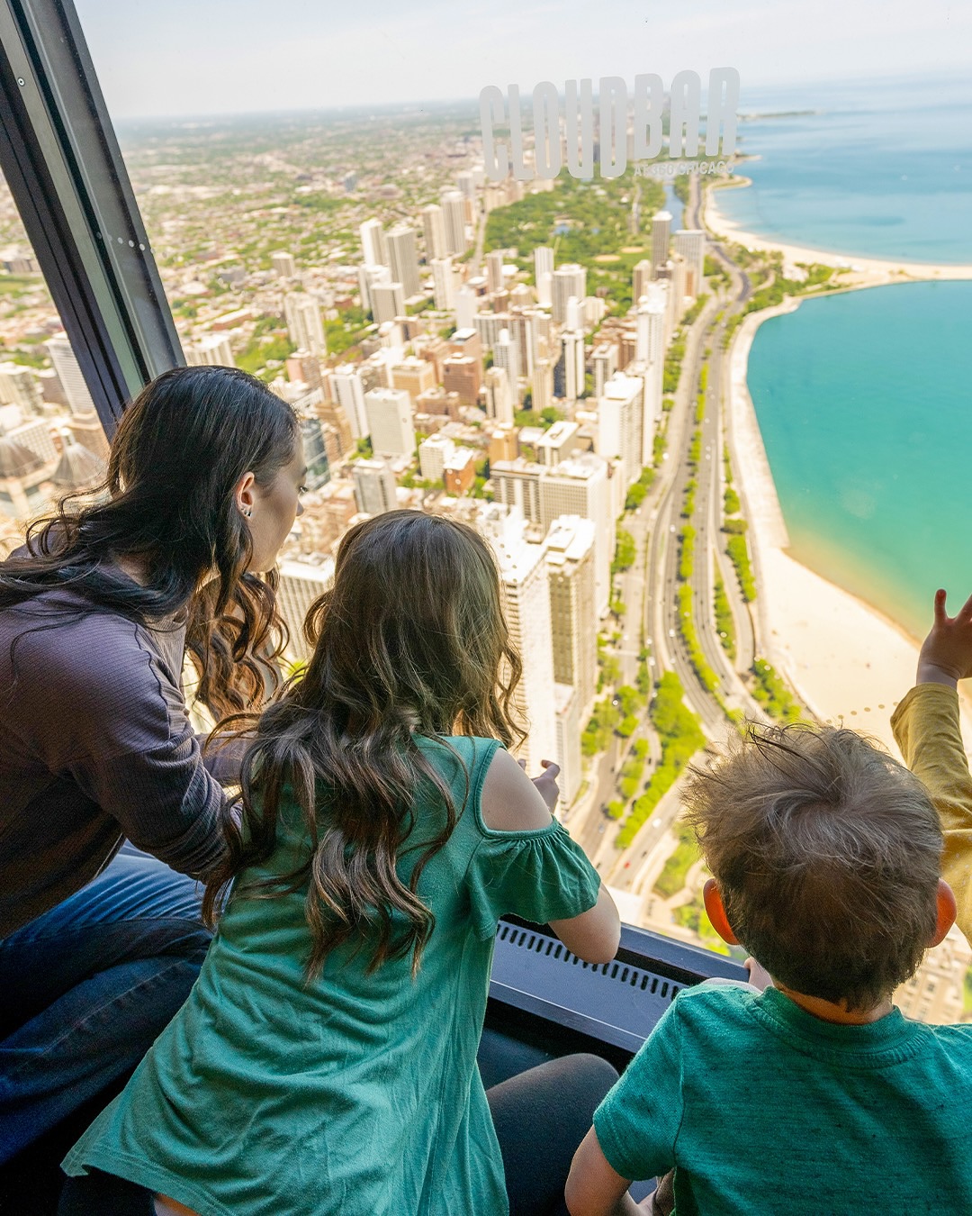 Para além do Tilt, o 360 Chicago oferece uma vista panorâmica a 360 graus que alcança quatro estados norte-americanos — Illinois, Wisconsin, Indiana e Michigan — e ainda o Lago Michigan. A experiência começa logo na subida de elevador e culmina no centro de observação, onde a cidade se estende aos seus pés.