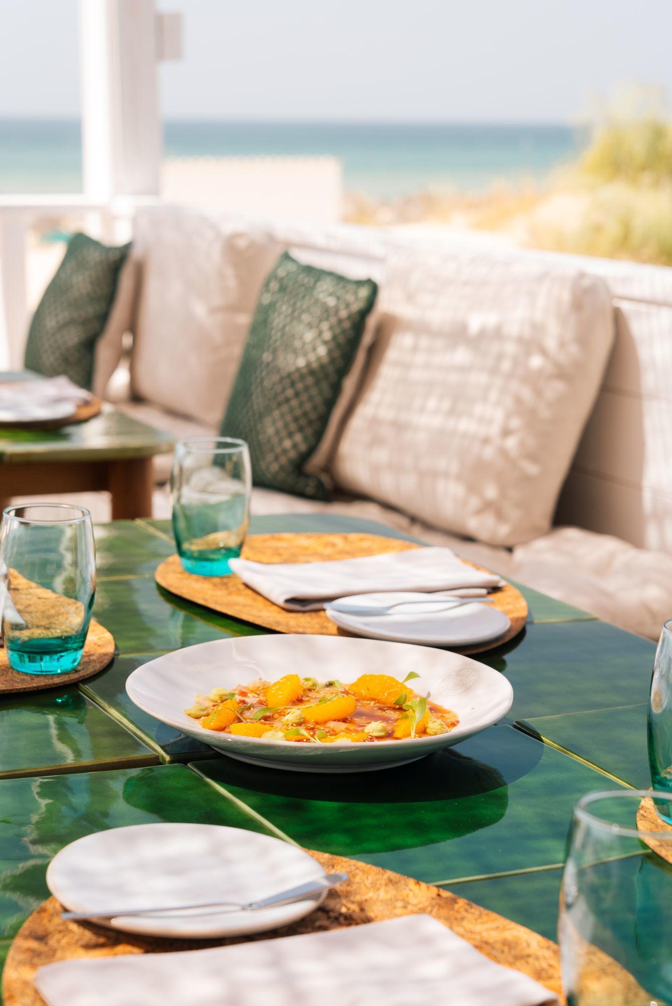 O restaurante À TERRA apresenta uma cozinha de inspiração mediterrânica, liderada pelo chef David Domingues, que valoriza os produtos frescos do Algarve, da horta e da Ria Formosa, com pratos preparados a forno de lenha ou josper. Há ainda o novo Praia Verde Beach Restaurant, junto à concessão de praia privada, que serve peixe fresco, saladas e petiscos, e que nos fins de semana de verão oferece sunsets com DJ, noites de ostras e champanhe.