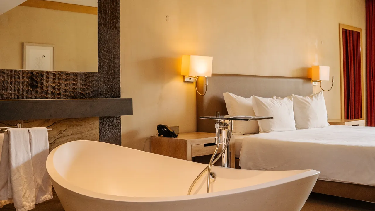 A poucos minutos da Praia do Porto Santo, o The Navigator Columbus Hotel volta a receber hóspedes com 100 quartos já operacionais e um conceito all inclusive que promete elevar o padrão da oferta hoteleira da ilha. Os alojamentos variam entre quartos com vista montanha e suítes com vista mar, todos recentemente remodelados e decorados com tons neutros que remetem à paisagem dourada e serena do Porto Santo.