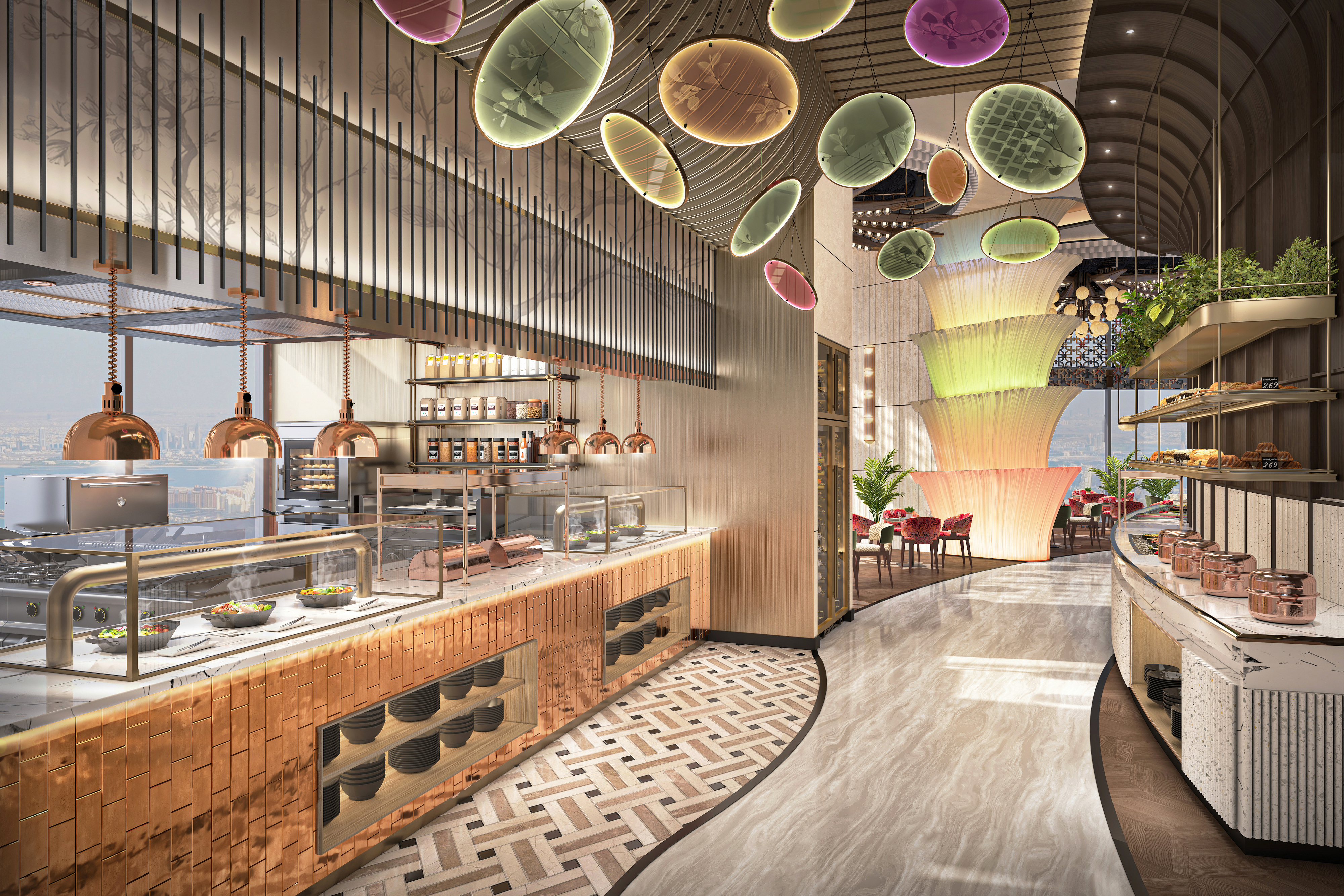 A experiência prolonga-se para além da hospedagem. O Ciel terá um spa de luxo, ginásio, lounges exclusivos e um átrio de observação no 81.º piso, onde cada momento se torna um instante memorável. E a gastronomia acompanha o nível do resto do hotel: mais de oito restaurantes distintos, incluindo o West 13, East 14 e o Tattu, que se desdobra em três conceitos diferentes nos pisos mais altos, oferecendo uma viagem de sabores sem paralelo.