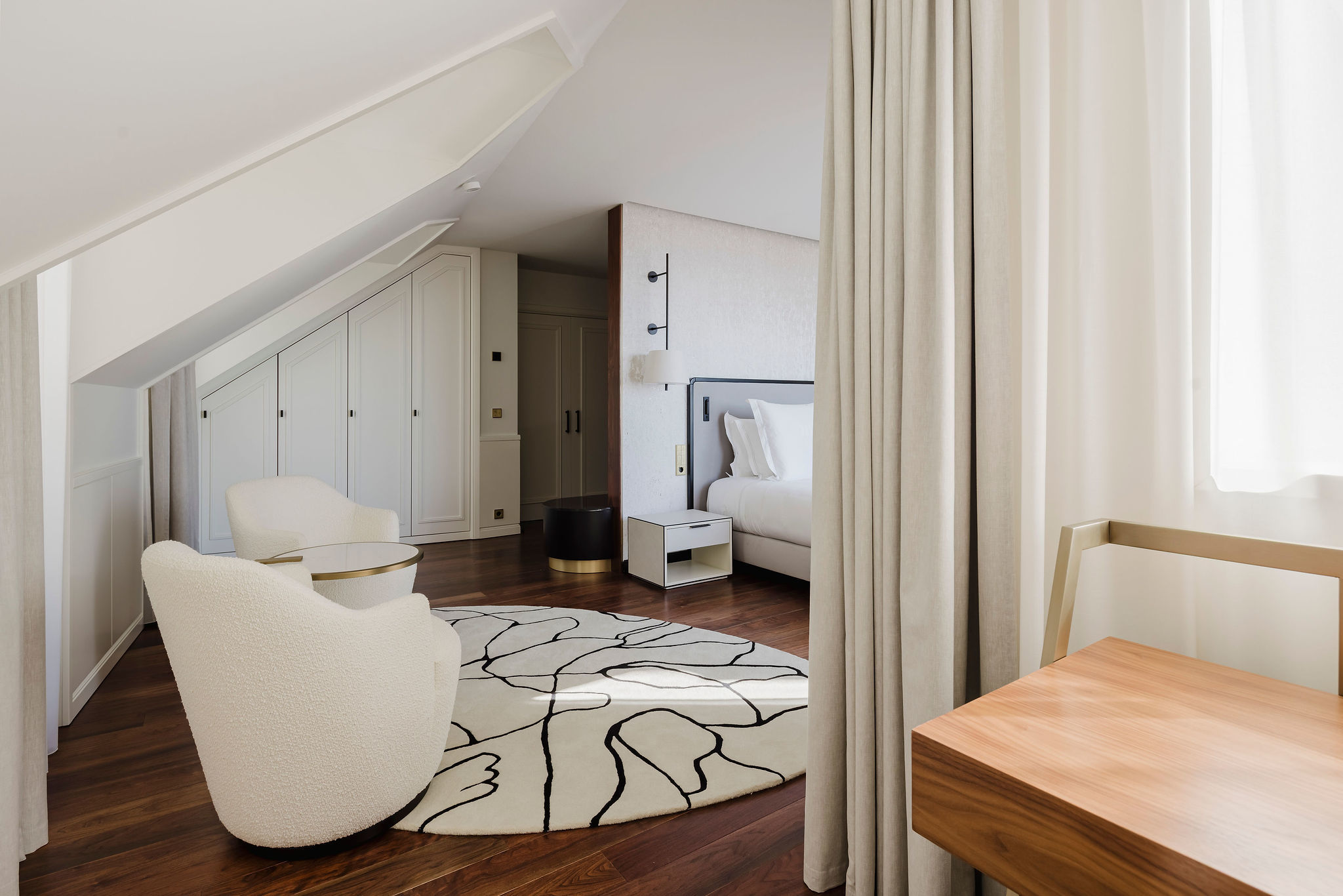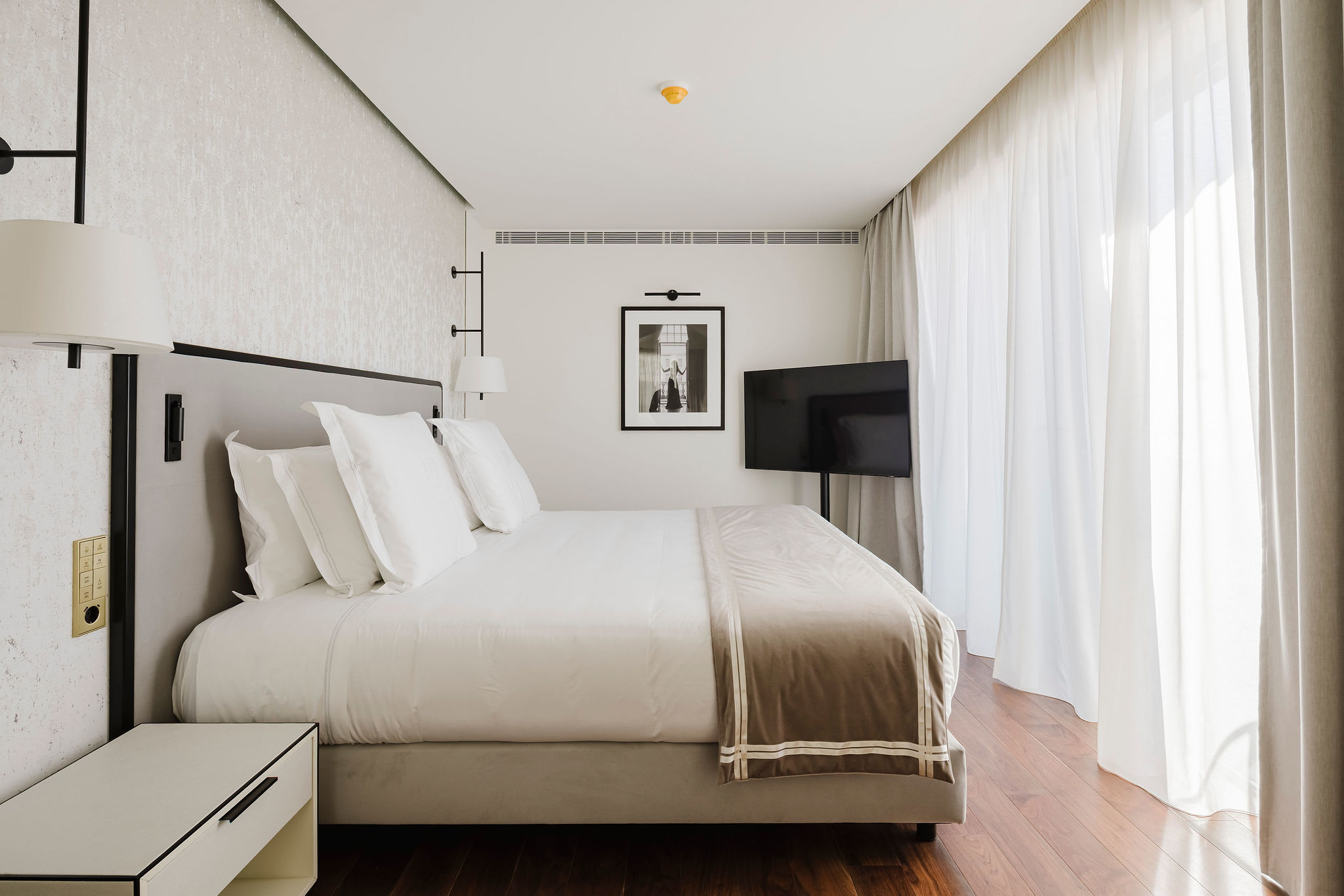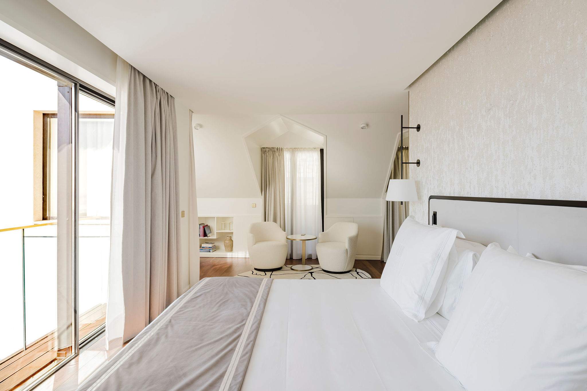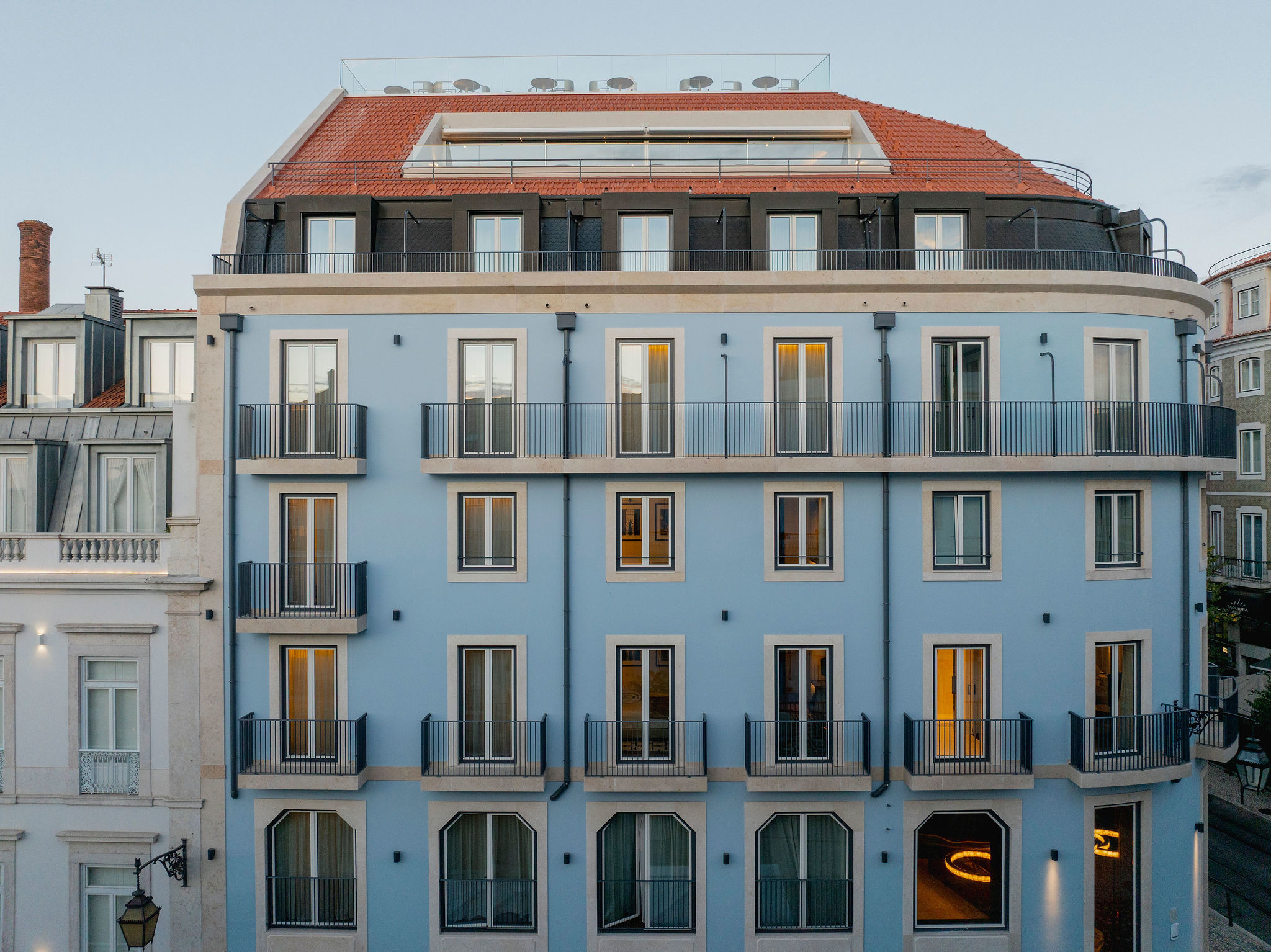 Cada detalhe foi pensado para proporcionar uma experiência de conforto absoluto, num equilíbrio entre linhas contemporâneas e elementos clássicos. O espaço inclui um spa com piscina interior e tratamentos anti-ageing, um bar de cocktails de autor e o Beyond Rooftop Bar, com vista panorâmica sobre os telhados do Chiado e o rio Tejo.