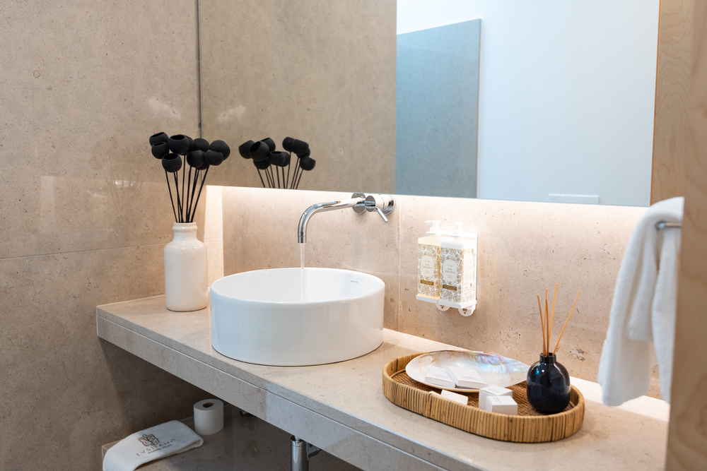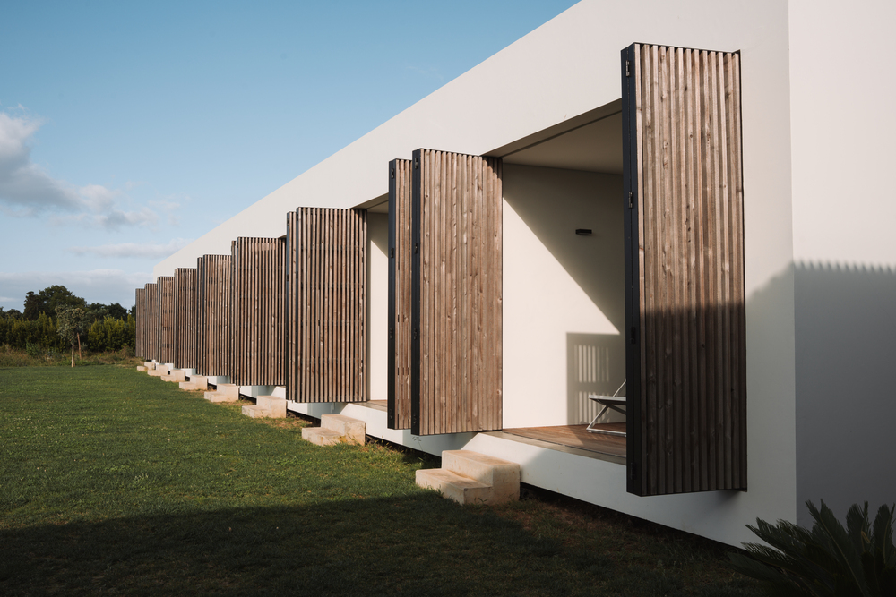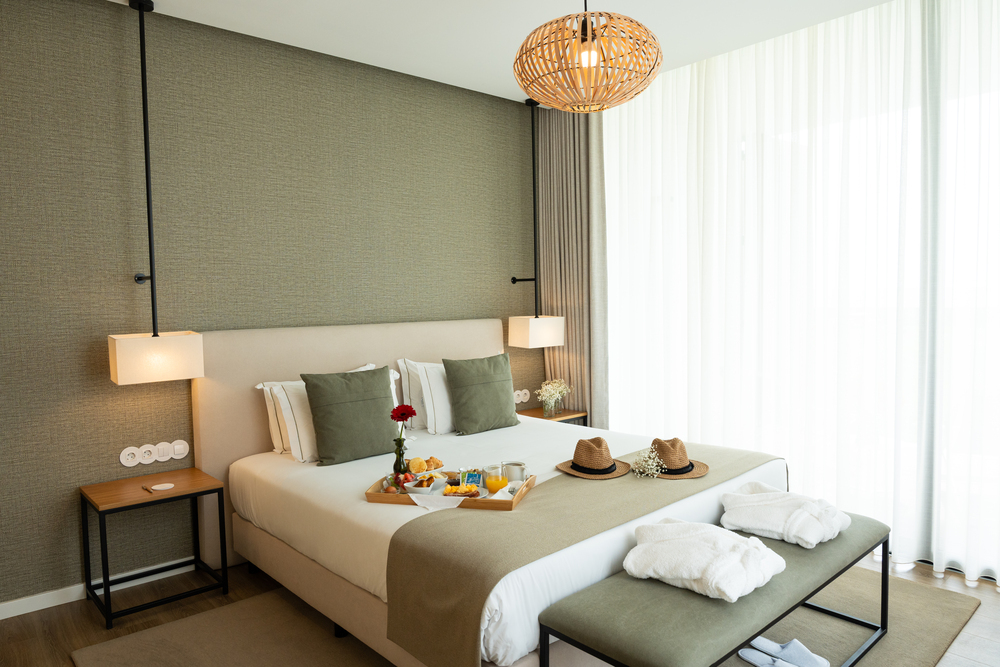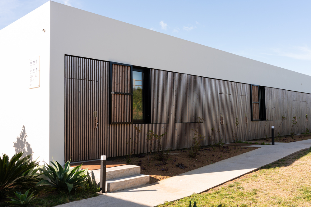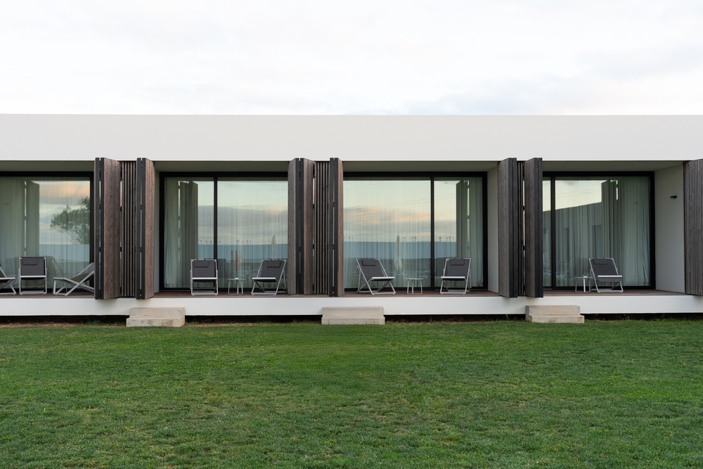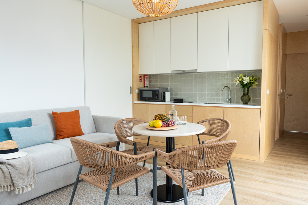 O empreendimento dispõe de 16 villas de 44 metros quadrados, concebidas pelo arquiteto David Almeida. Entre tipologias standard e premium, quatro unidades comunicantes são perfeitas para famílias. Cada villa acolhe até quatro pessoas e inclui quarto duplo, sofá-cama, kitchenette e varandas ou decks privativos, alguns com jacuzzi e vistas para o mar, serra ou piscina.