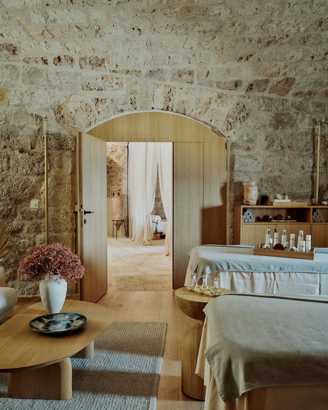 Nas acomodações, há quartos com varanda sobre o Adriático, suítes panorâmicas com terraços privados e opções instaladas na torre histórica da fortaleza, como a Sky Suite. Em setembro, uma noite para dois custa a partir de 723 €, baixando para 553 € em outubro. Para estadias mínimas de três noites, o hotel aplica um desconto de 35% sobre a tarifa mais baixa.