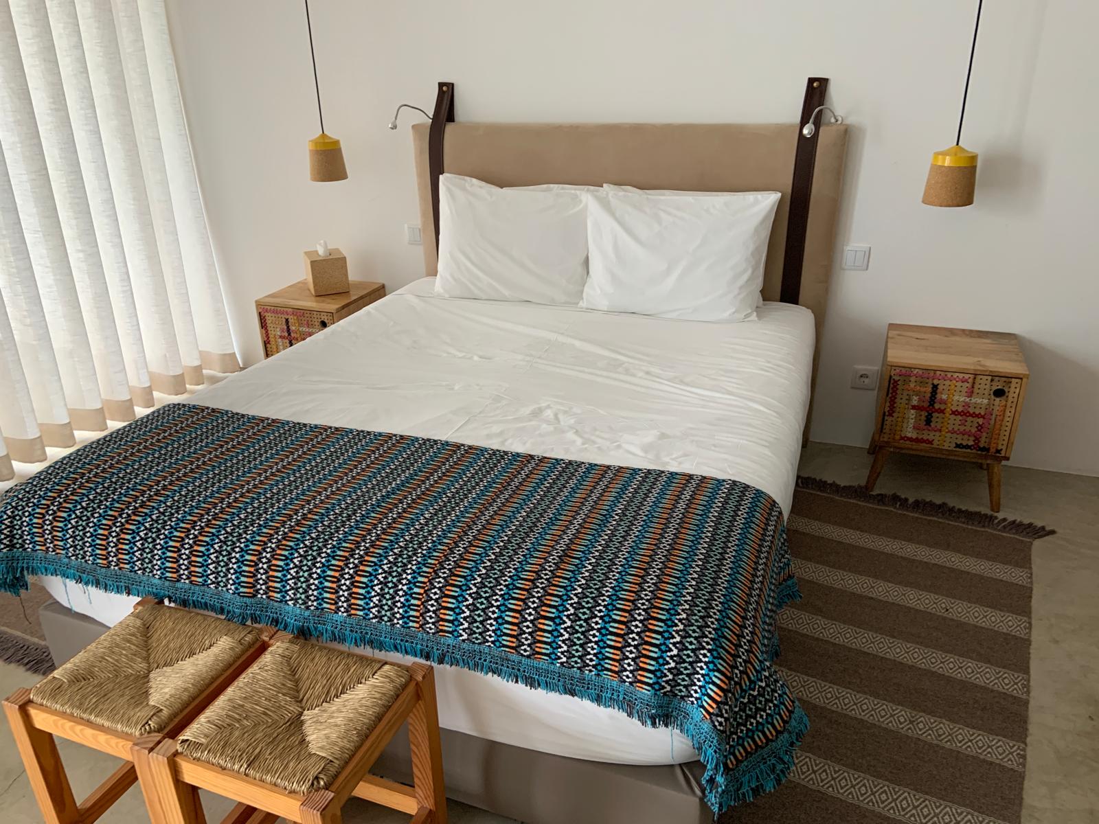 Quanto ao alojamento, está dividido entre a ala Monsaraz e a ala Alqueva. No total, são 15 quartos (quatro deles são suites premium, com cama de rede, piscina privativa e uma sala grande) e um apartamento T1 (com cozinha e sofá-cama, acomoda até três adultos). As suites têm uma ocupação ideal máxima de duas pessoas, sendo no entanto possível colocar cama extra ou berço.