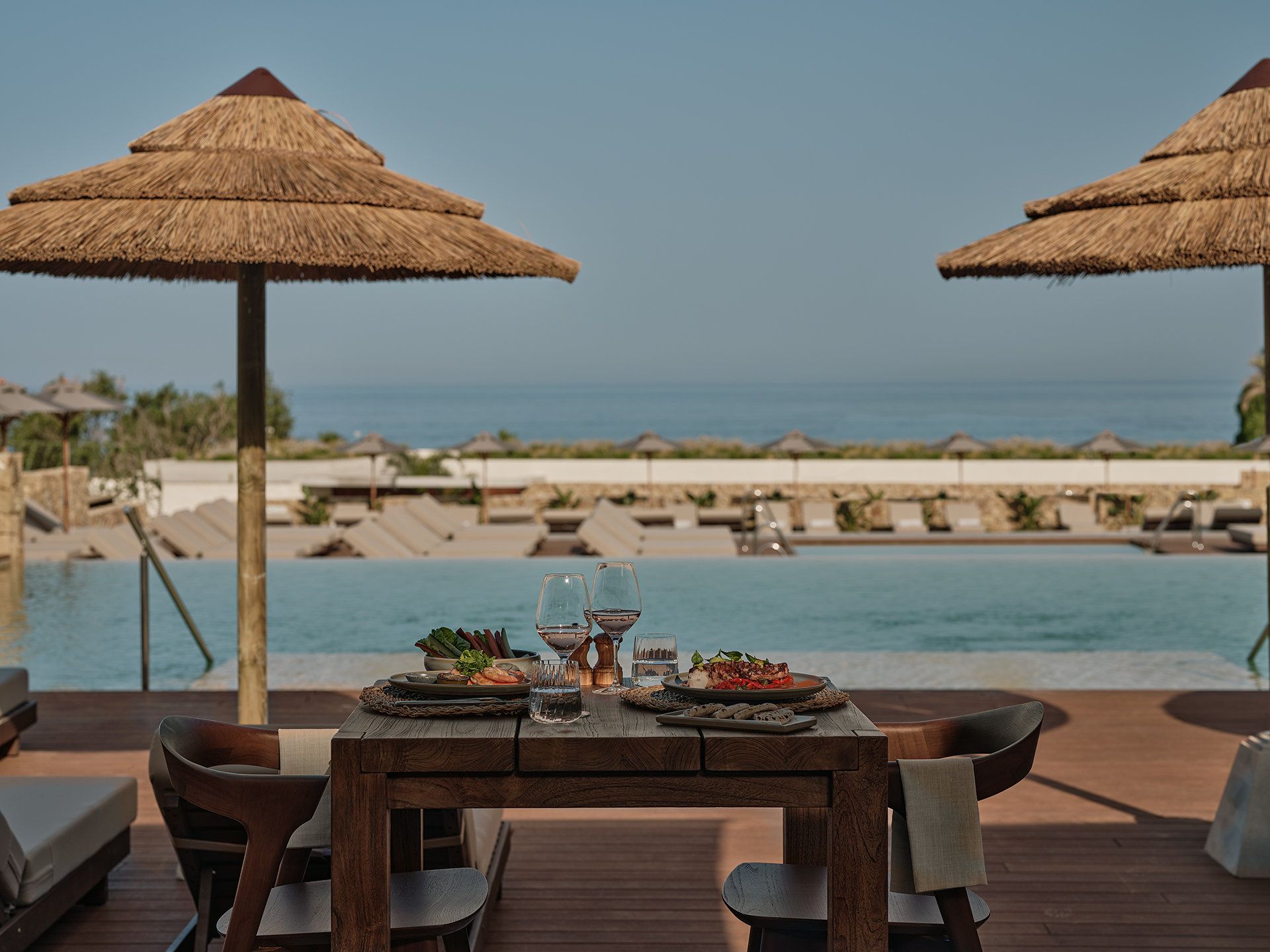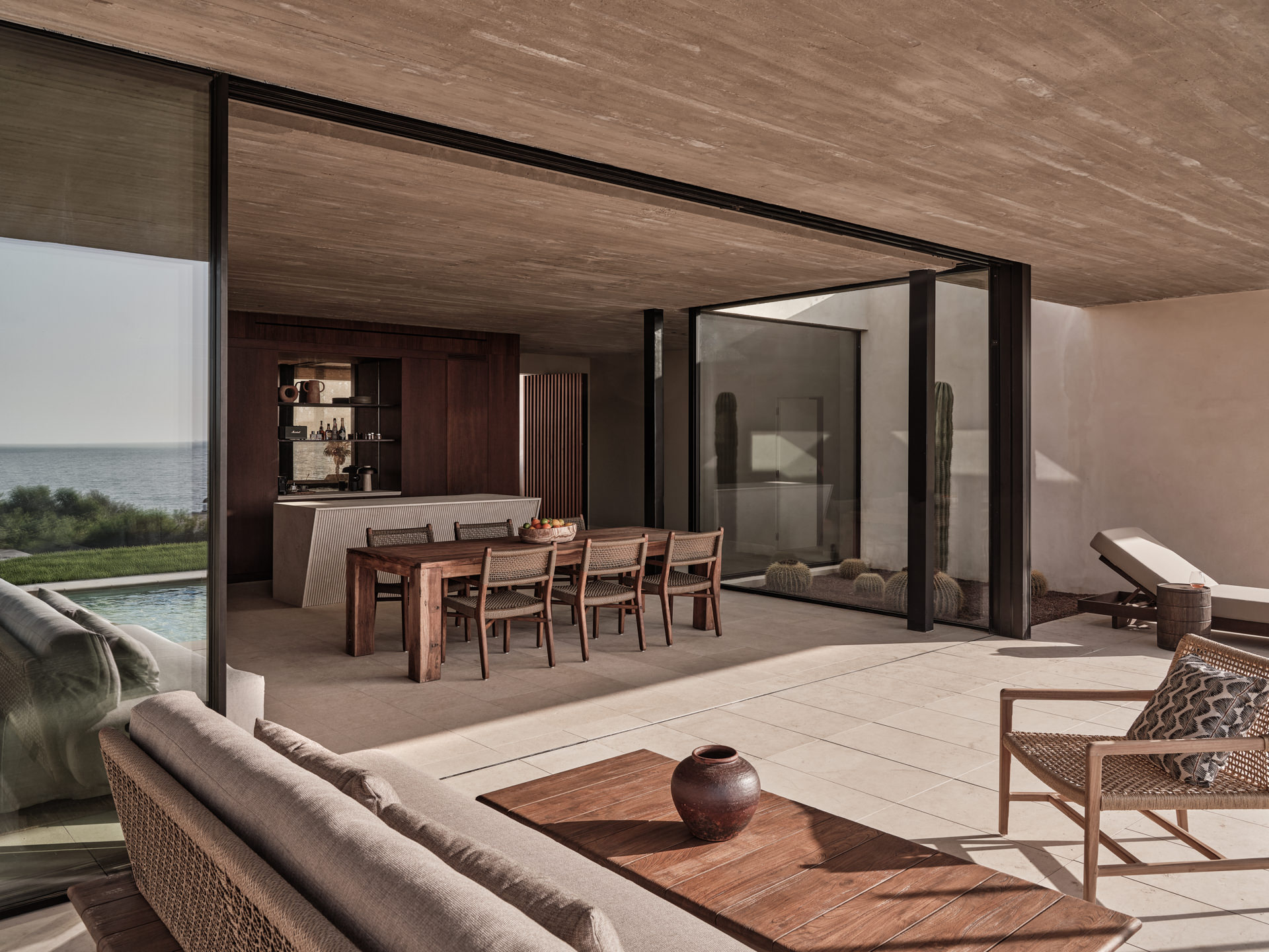 As acomodações são pensadas para todos os tipos de viajantes. Com 225 quartos, incluindo suítes com piscina privada e uma villa de quatro quartos com piscina de 10 metros, cada espaço combina conforto, privacidade e estilo minimalista inspirado na natureza. As varandas e terraços proporcionam vistas para o mar ou para os jardins, enquanto os interiores usam materiais como madeira e pedra local, transmitindo calma e sofisticação em cada detalhe.