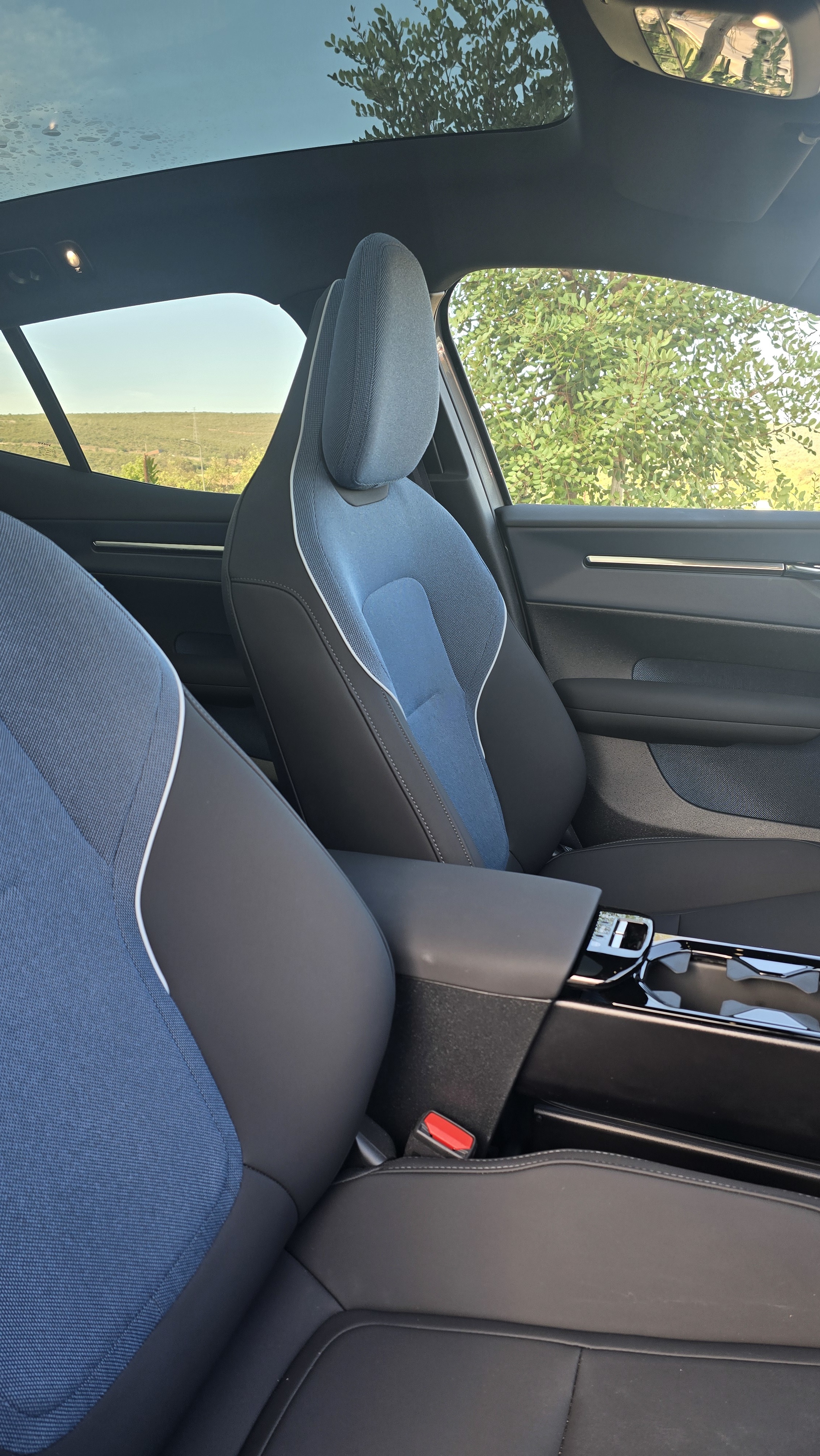 Ainda sobre promessas, a Volvo promete carregamento dos 10% aos 80% em apenas 26 minutos. Os nossos valores não foram exatamente esses mas confirmamos que a velocidade com um carregador CCS Combo é bastante elevada. O teto panorâmico ajuda a potenciar a sensação de espaço do EX30 Cross Country. A robustez da direção, aliada a uma condução suave mas apetitosa, torna este modelo apetecível para viagens de longas horas. Tivemos a oportunidade de o levar para fora de estrada e, em pisos mais irregulares, o EX30 Cross Country revelou-se obediente e poderoso. Falando em termos mais corriqueiros, é um carro perigoso para quem gosta de andar a assapar. D-E-N-T-R-O D-A-S N-O-R-M-A-S D-E S-E-G-U-R-A-N-Ç-A. Convém sempre reforçar.