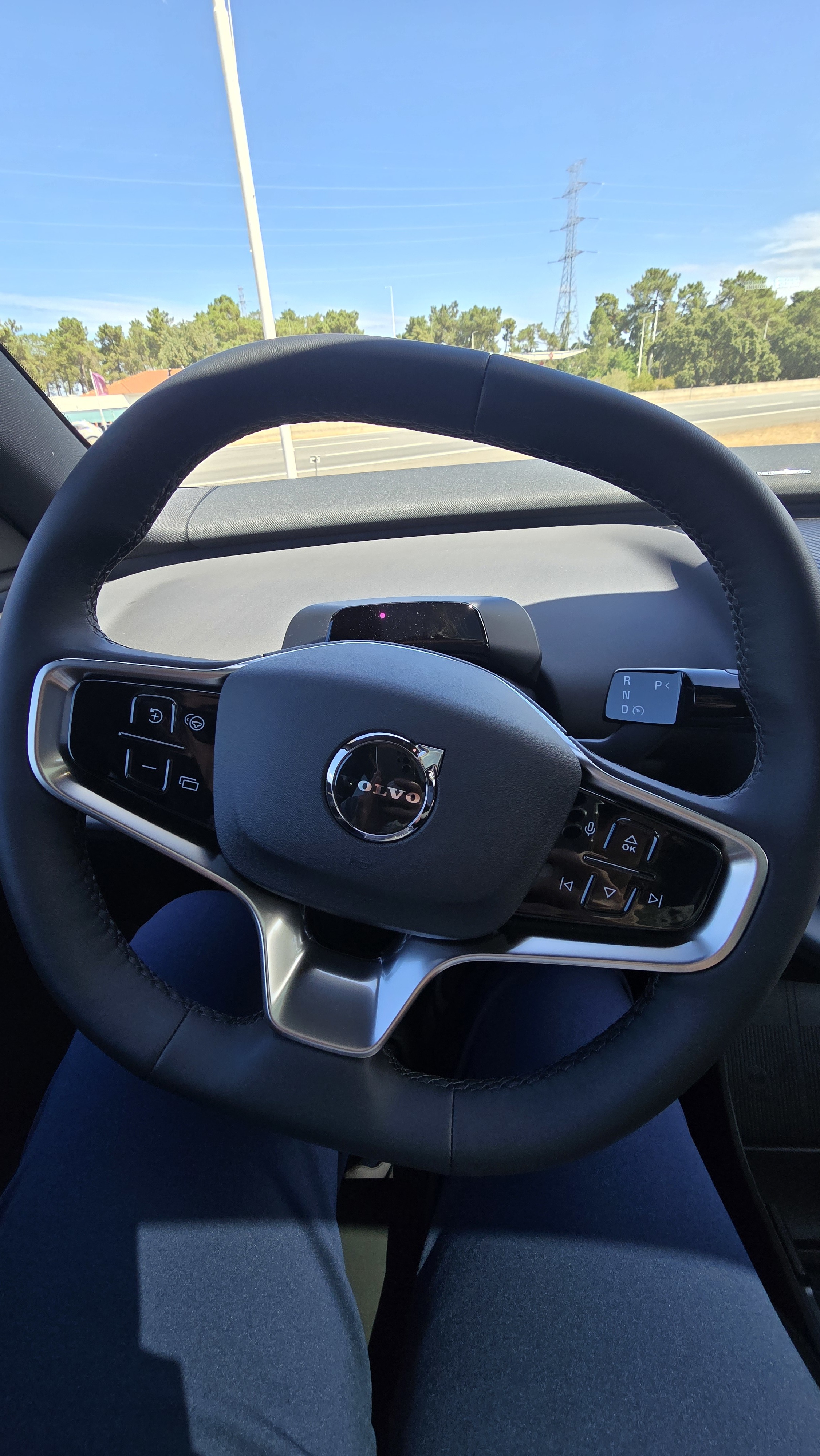 - comandos de volante simples e intuitivos: às vezes, temos de admitir, ficamos a olhar para volantes como burros a olhar para um palácio. É tão botãozinho, tanta setinha, que sentimos que precisamos de tirar um curso mesmo antes de arrancar. Não se passa tal coisa com o EX30 Cross Country, que minimizou a presença de botões ao essencial. Lagom*, como dizem os suecos.