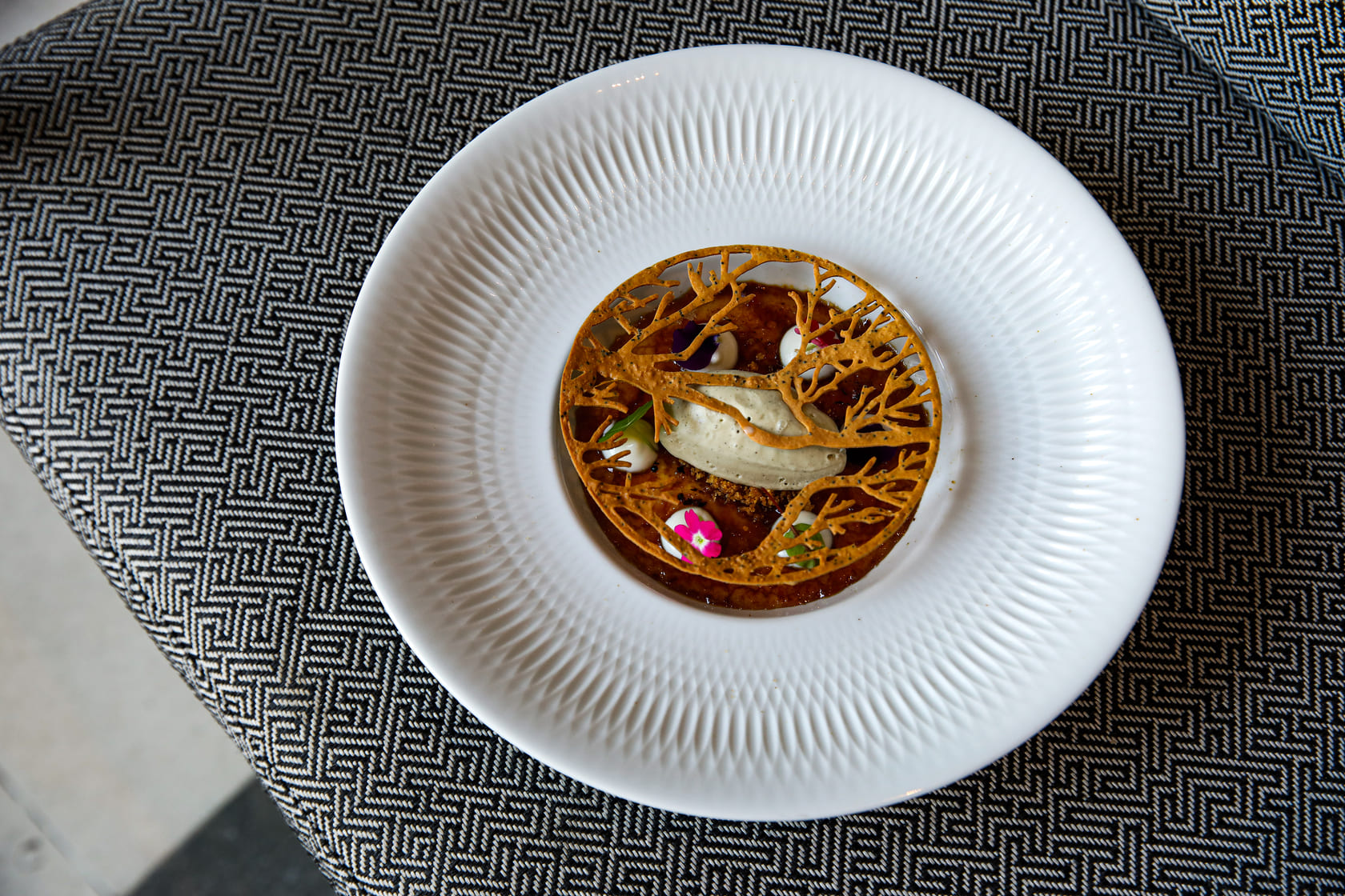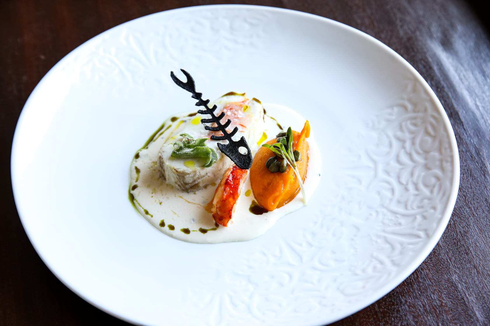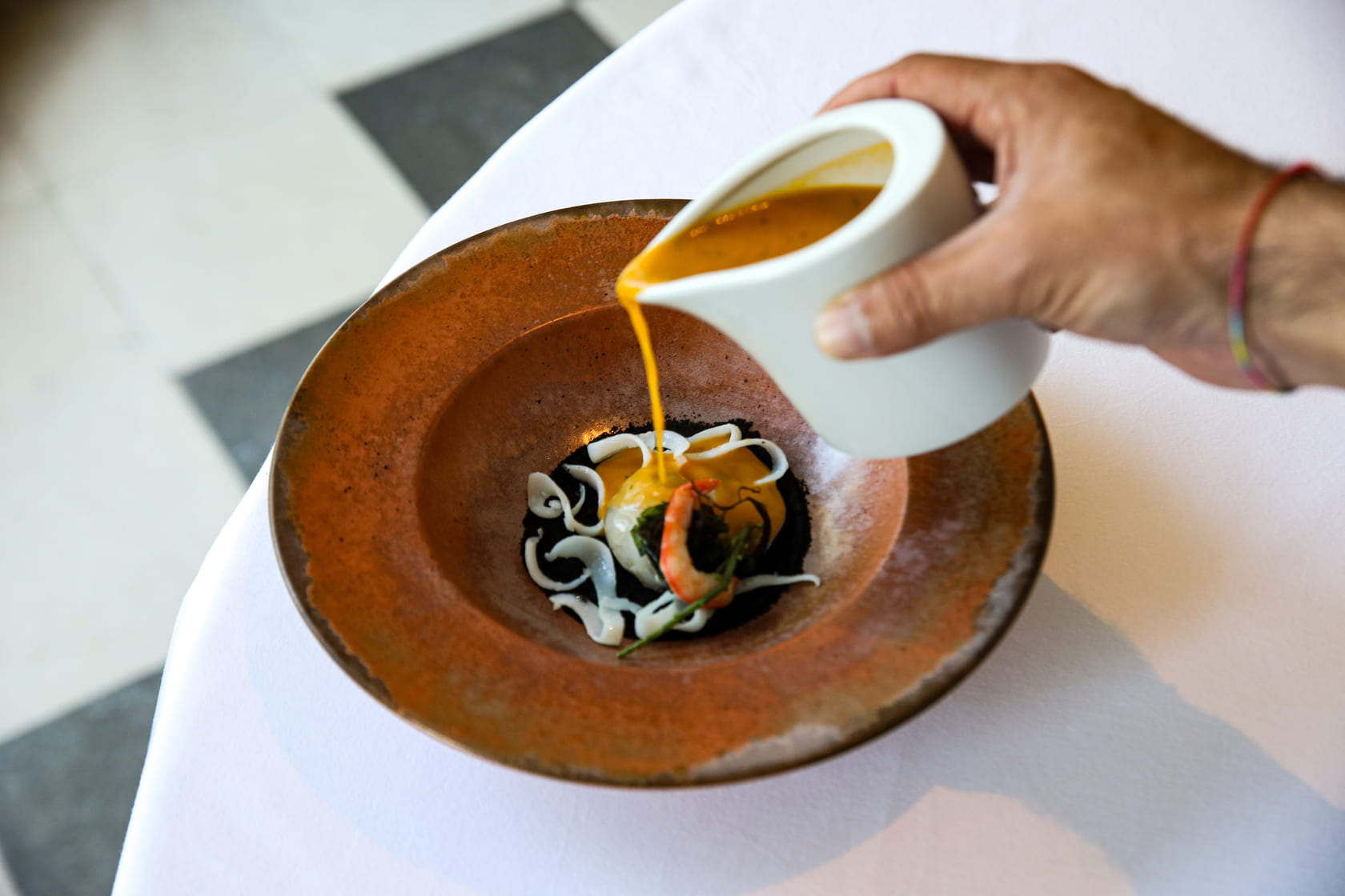 Entre as criações, a sopa de peixe combina gamba do Algarve, peixe da lota e choco, finalizada com crocante de milho e algas. O prato C. L. P. junta camarão, lavagante e pregado com abóbora e creme de manteiga e ervas, enquanto o clássico rabo de boi estufado é servido com cremoso de batata trufada, espinafres e cogumelos salteados. A refeição termina com leite creme queimado acompanhado de gelado de tomilho e crocante de papoila e sésamo. O menu está disponível por 95€ por pessoa, sem bebidas, e pode ser complementado com um wine pairing por 35€ adicionais.