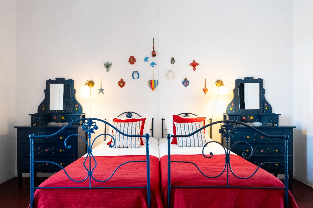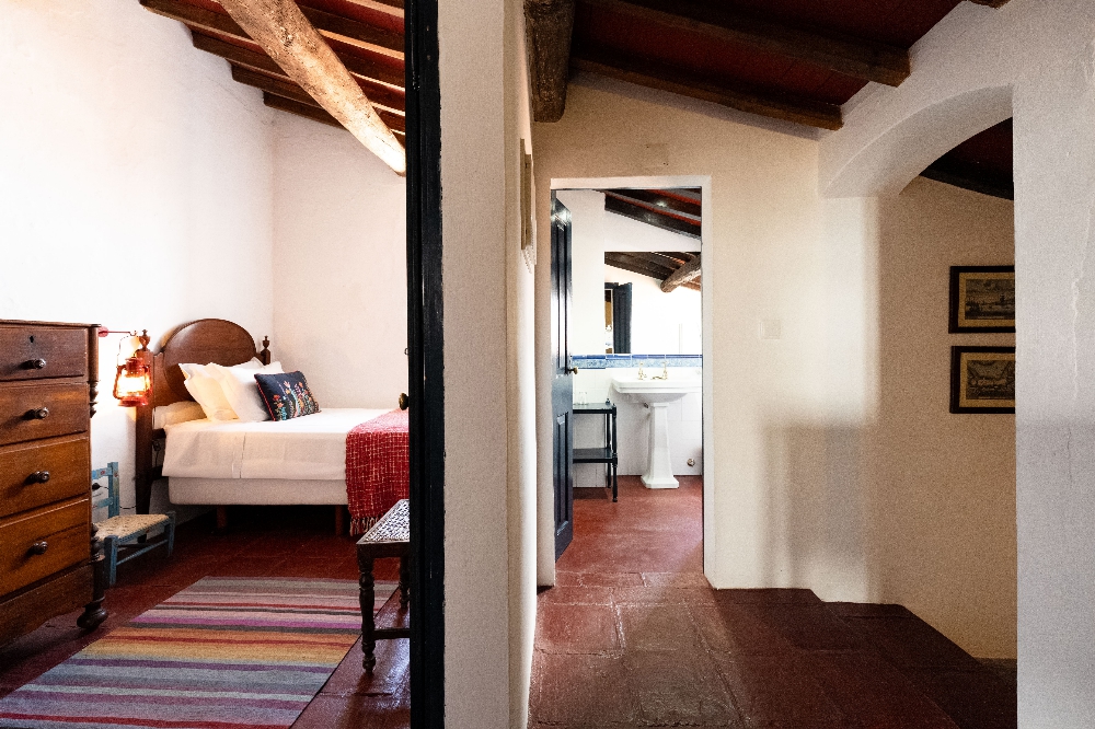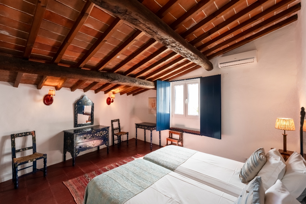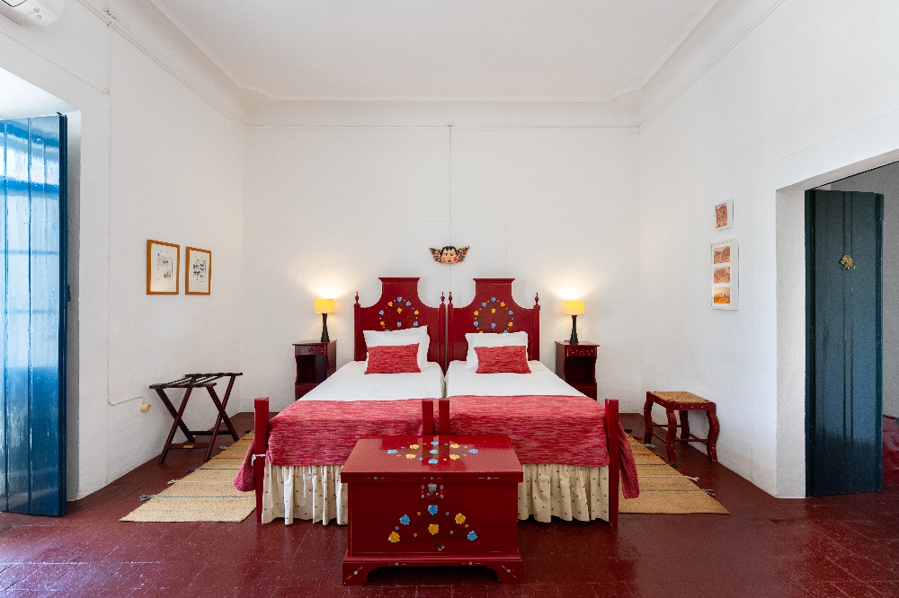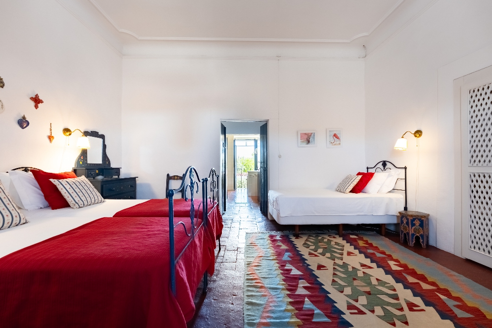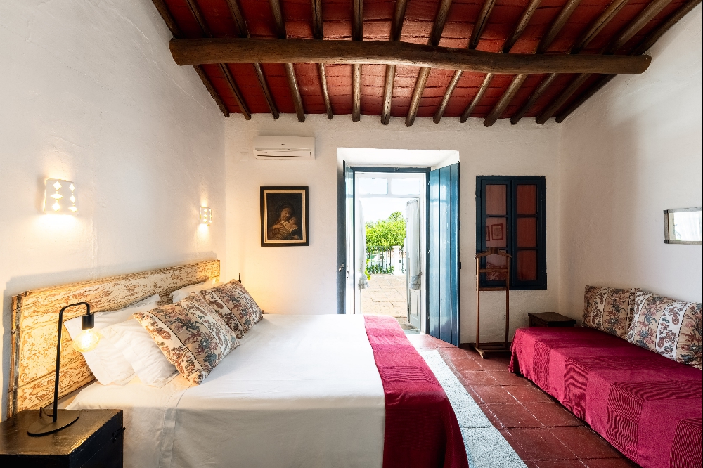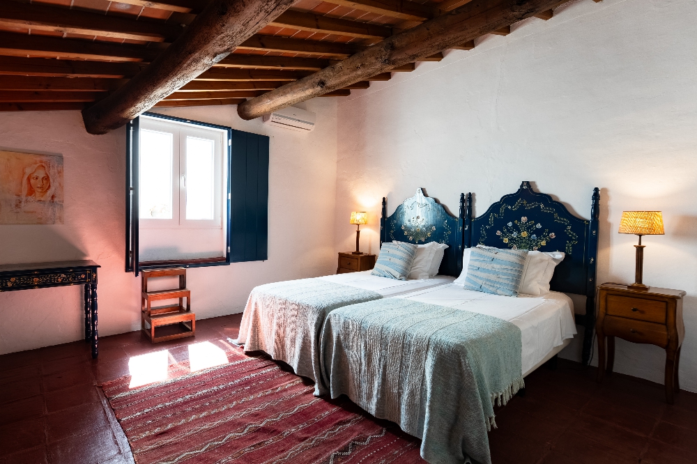 - A Casa dos Condes, situada na vila do Cano, no concelho de Sousel, é uma casa senhorial com mais de cinco gerações de história familiar. São sete quartos, pátios interiores, piscina rodeada por árvores de fruto e uma vivência profundamente ligada ao ritmo local. Entre o galinheiro, o sino da igreja e a cozinha tradicional, a experiência aproxima-se mais de uma estadia prolongada do que de uma simples noite fora. Preços por noite a partir de 82€ (quarto) e 176€ (casa).