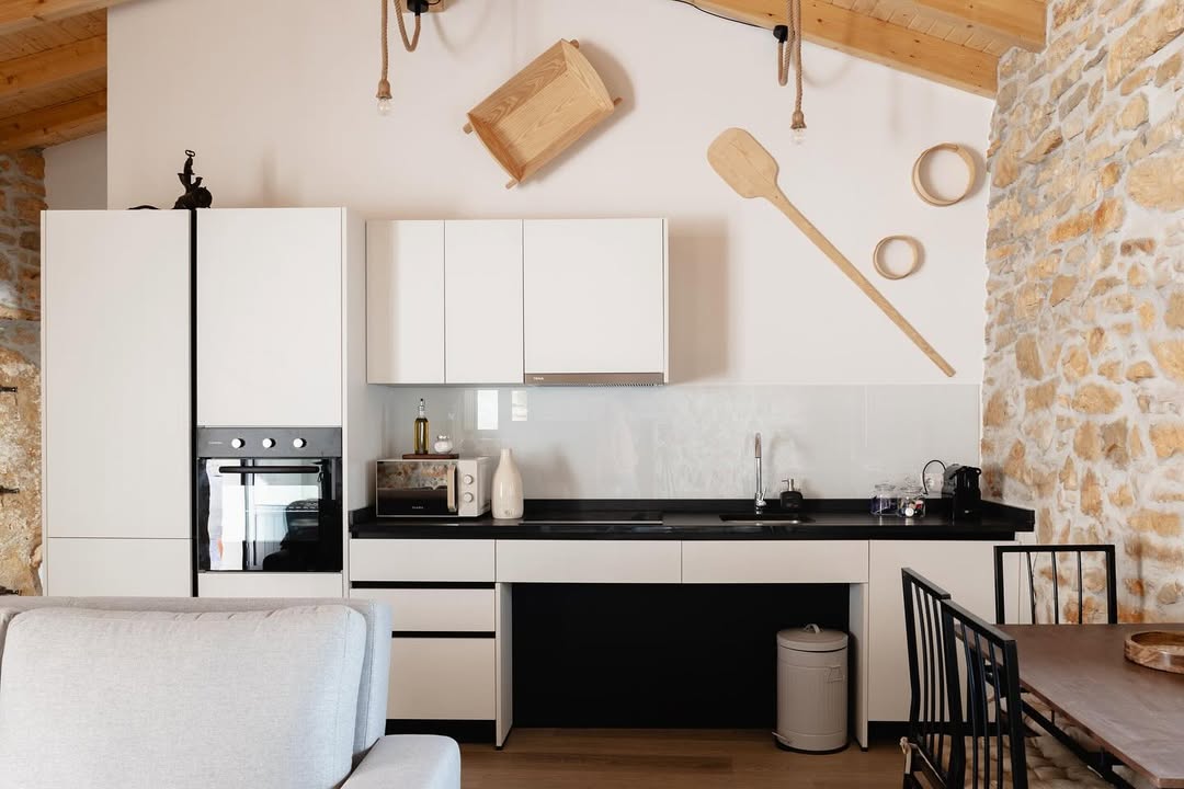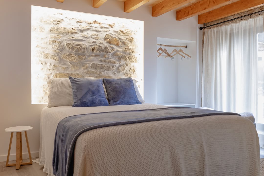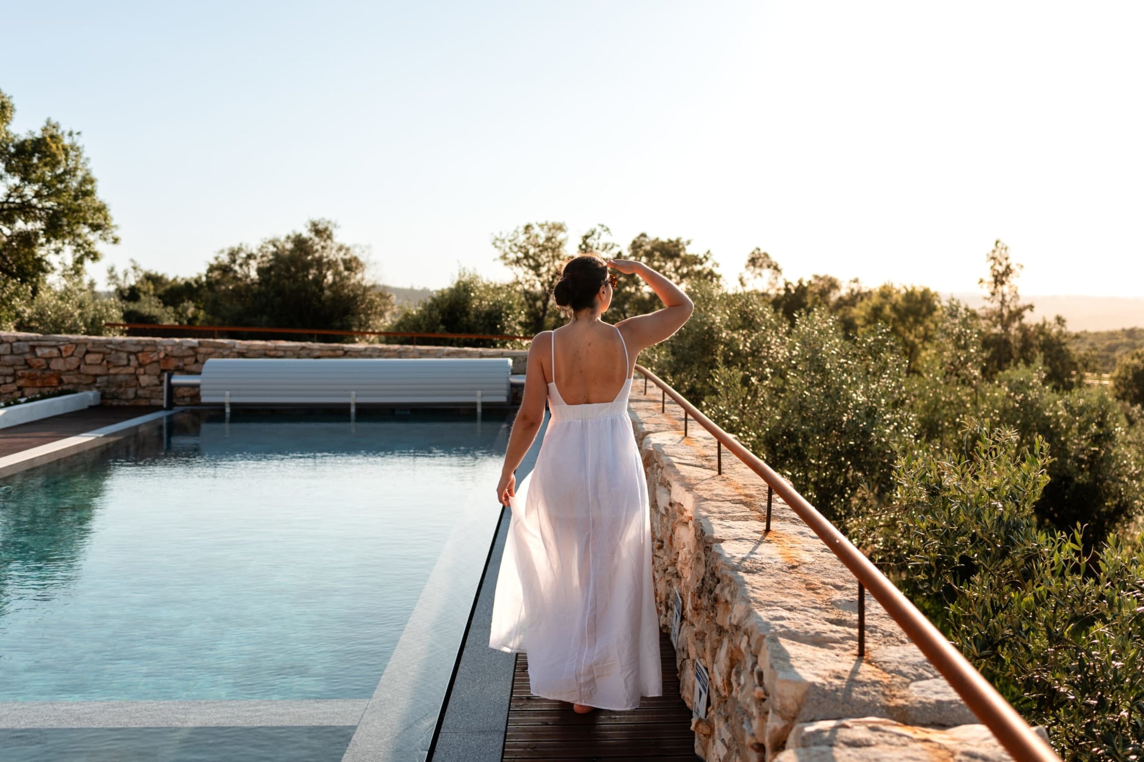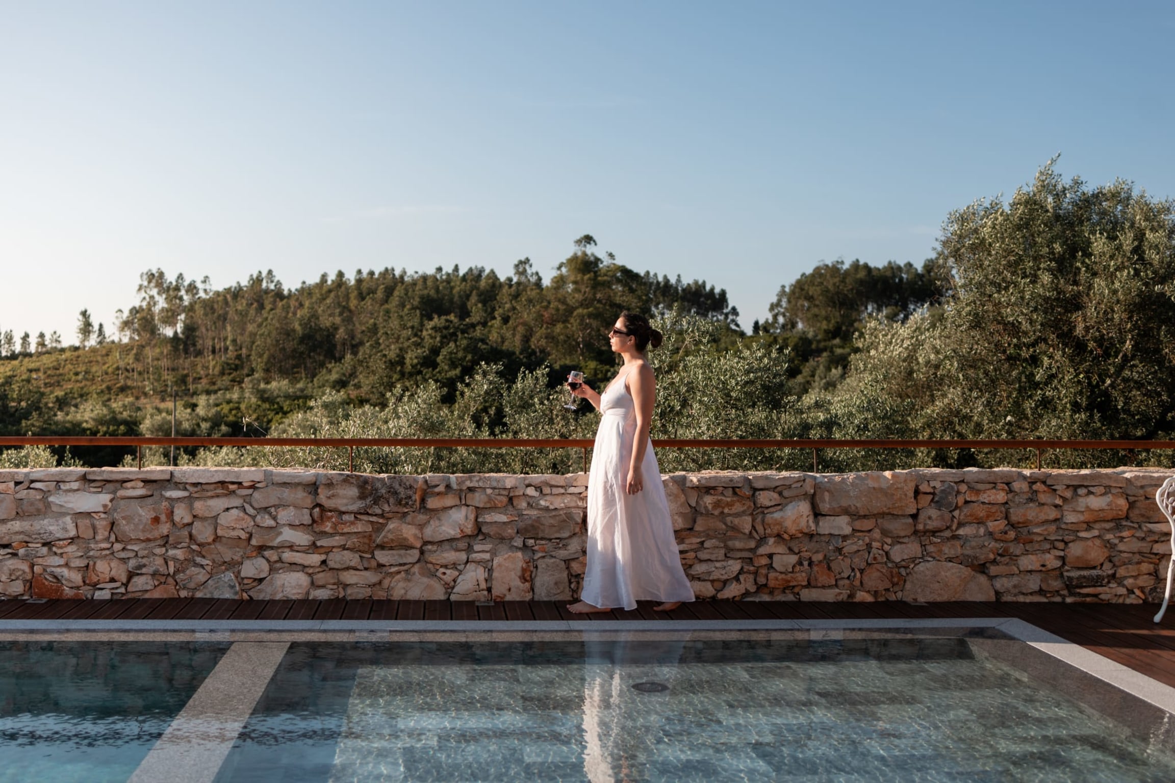 O alojamento divide-se em quatro casas independentes: três T2 com acesso a uma piscina de água salgada e uma T1 com jacuzzi privativo. A experiência começa logo à chegada, com um cabaz de boas-vindas, e pode incluir o prazer de acordar todas as manhãs com pão acabado de sair do forno à porta. Cada casa foi cuidadosamente recuperada, preservando a arquitetura em calcário e misturando tradição com interiores modernos e acolhedores.