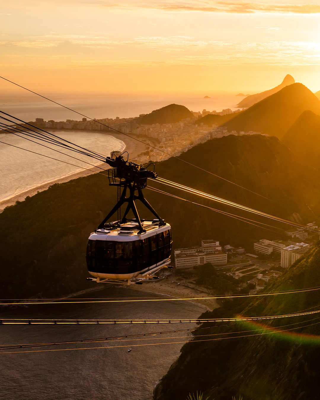 O icónico teleférico do Rio de Janeiro liga a Praia Vermelha ao Pão de Açúcar, proporcionando uma forma única de percorrer um dos cartões-postais da cidade. Ao longo do trajeto, é possível apreciar diferentes perspetivas da paisagem urbana, das falésias e das praias mais famosas, como Copacabana e Ipanema. A experiência combina movimento e contemplação, permitindo ao visitante captar a dimensão da Baía de Guanabara e da cidade que se estende entre montanhas e mar.