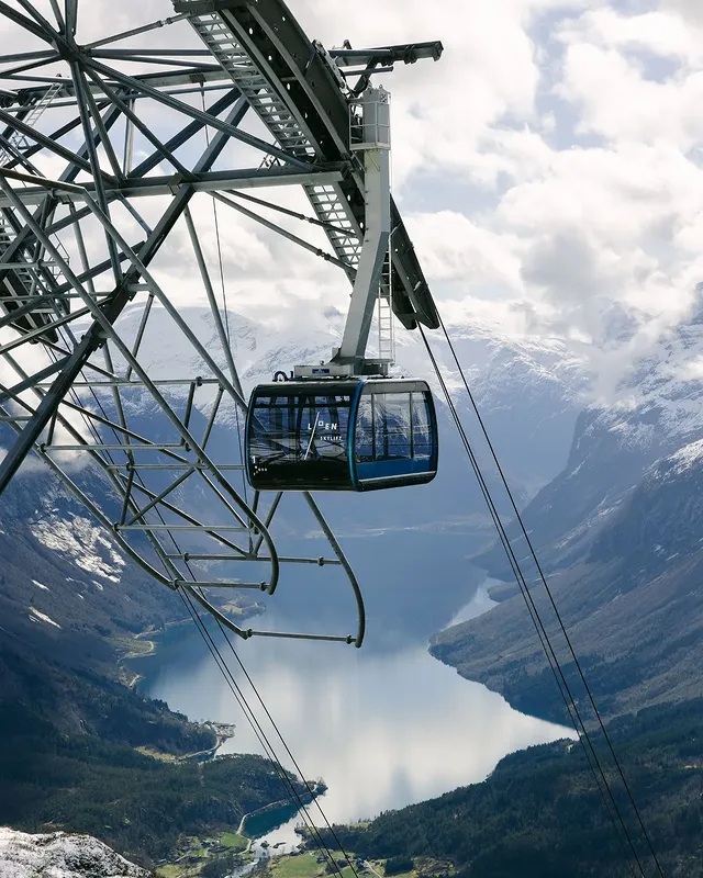 Este teleférico é considerado o mais inclinado do mundo, com uma inclinação de 60 graus. Transporta os visitantes quase mil metros em linha reta até ao restaurante no topo do Monte Hoven. No cume, é possível experienciar a natureza de forma intensa, seja apreciando a paisagem a partir do confortável anfiteatro do restaurante, observando do terraço ou explorando os trilhos de montanha. Esta viagem combina adrenalina, conforto e contacto próximo com as paisagens dramáticas dos fiordes noruegueses.