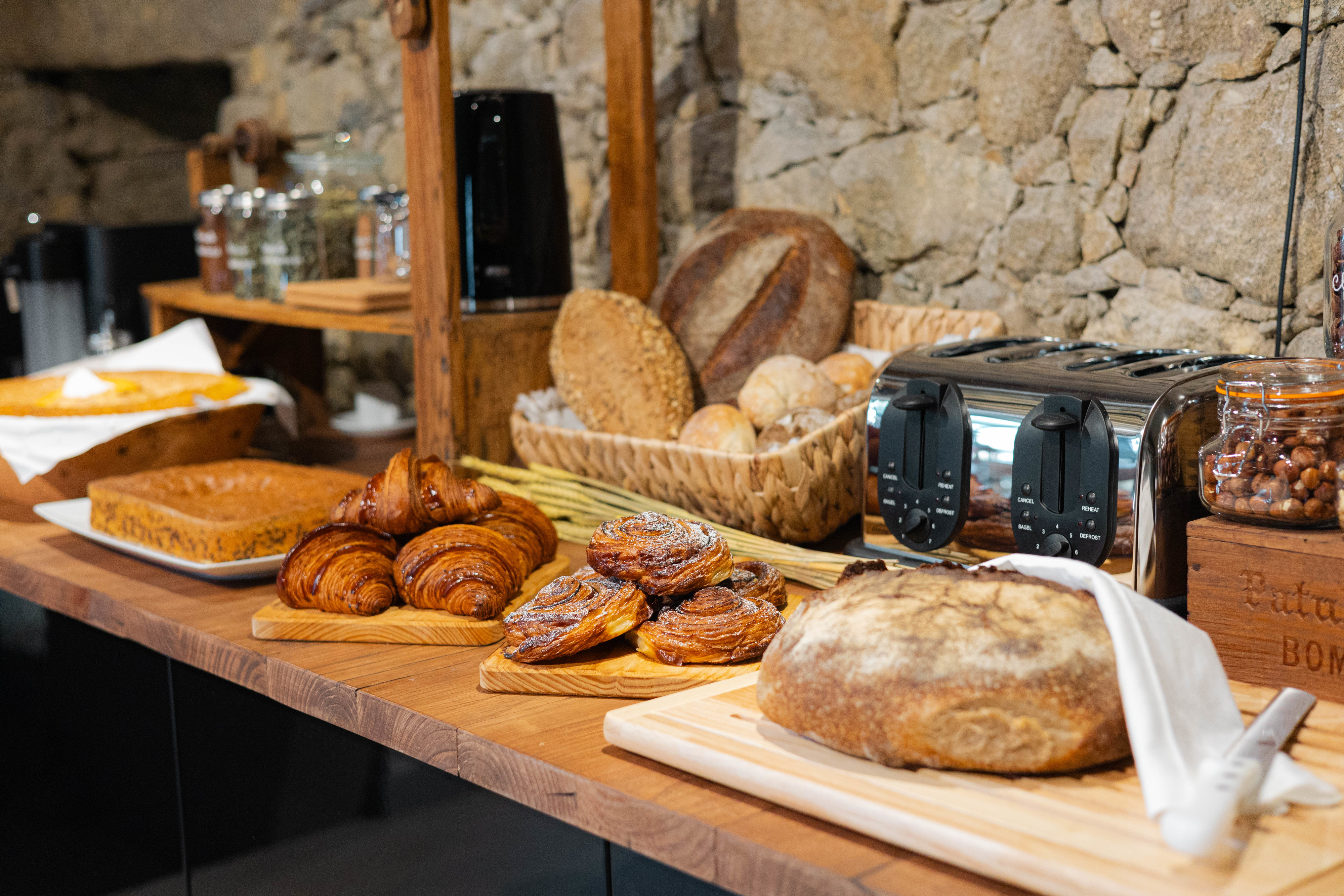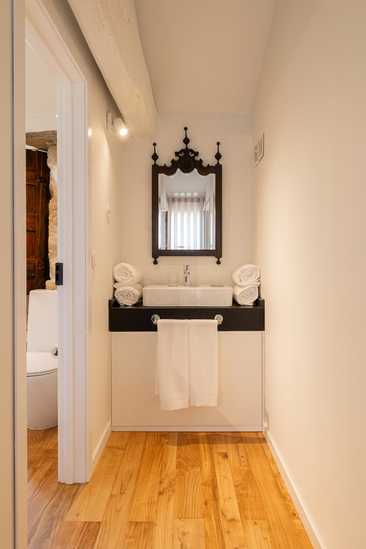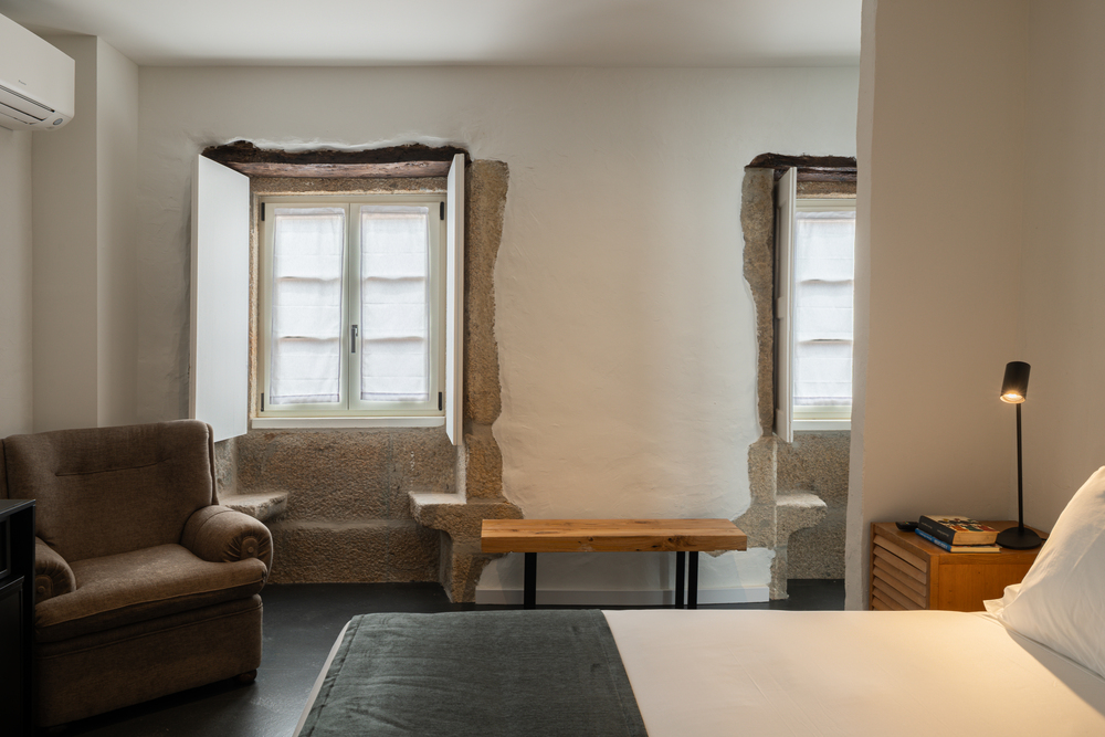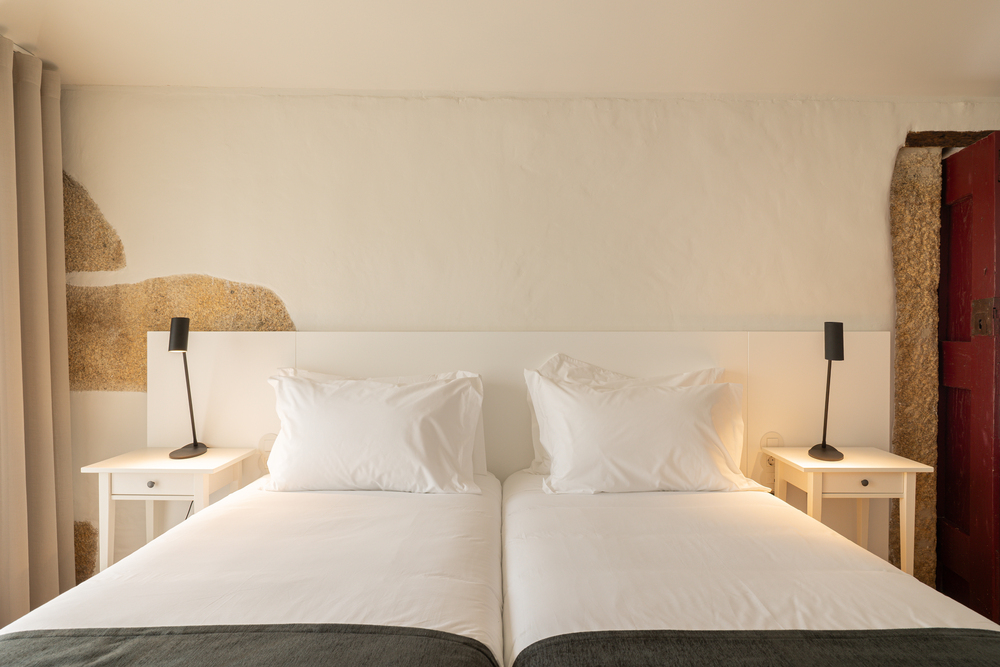 Com 19 unidades de alojamento – 14 quartos, quatro T2 e um T1 – a propriedade distribui-se em redor de uma eira de 400 metros quadrados, hoje dedicada ao descanso dos hóspedes. A estética rústica sente-se no granito das paredes, no mobiliário artesanal e no trabalho de recuperação que devolveu vida a cada detalhe. O ambiente acolhedor prolonga-se da sala de pequeno-almoço até ao antigo lagar, onde, em dias de sorte, o piano colocado à entrada se faz ouvir pelas mãos de amigos da casa ou de hóspedes talentosos.