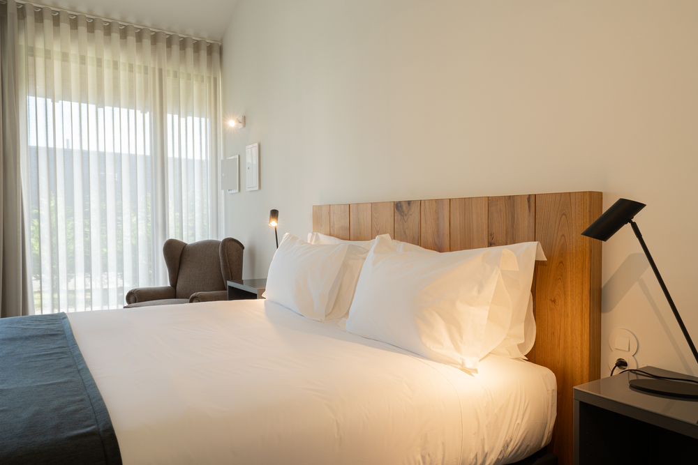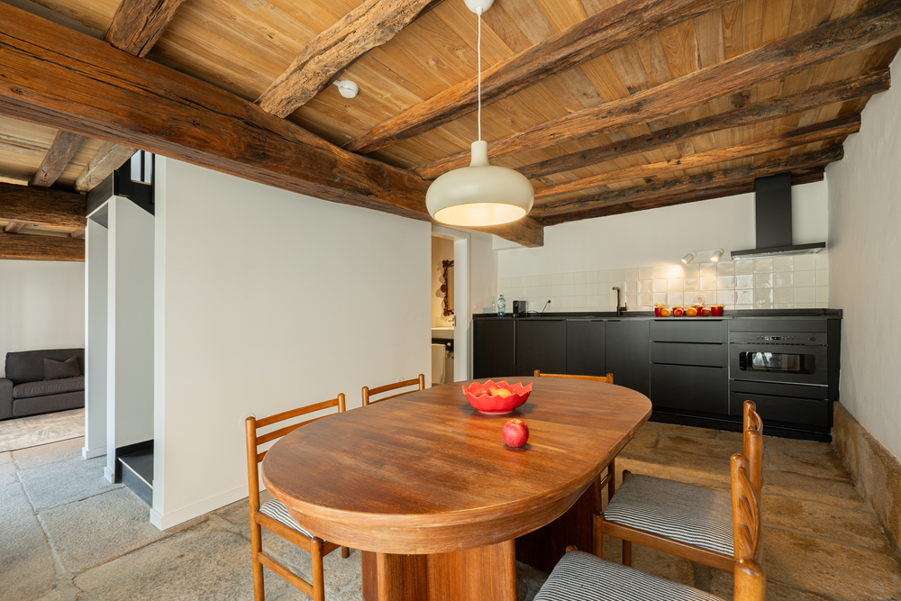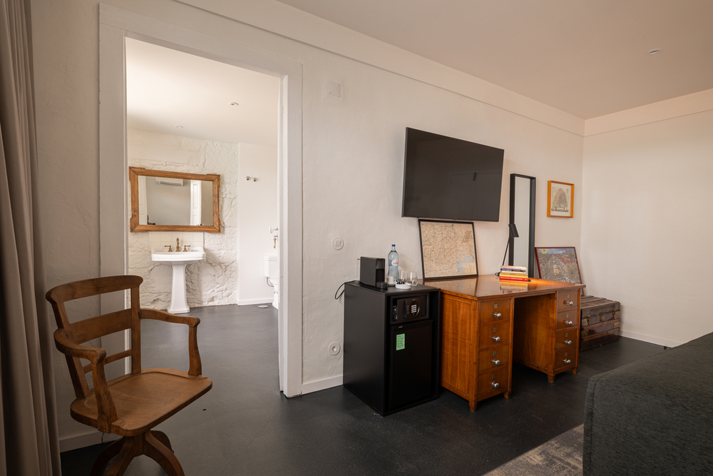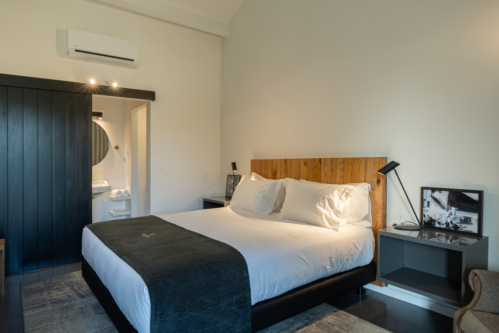 A piscina exterior, voltada para um horizonte verde e silvestre, reforça o apelo ao descanso, tal como a pequena sala de tratamentos, de espírito intimista, que disponibiliza massagens e rituais de bem-estar. Há bicicletas para explorar os arredores, estacionamento no local e refeições caseiras ao jantar, mediante reserva feita na manhã do próprio dia.