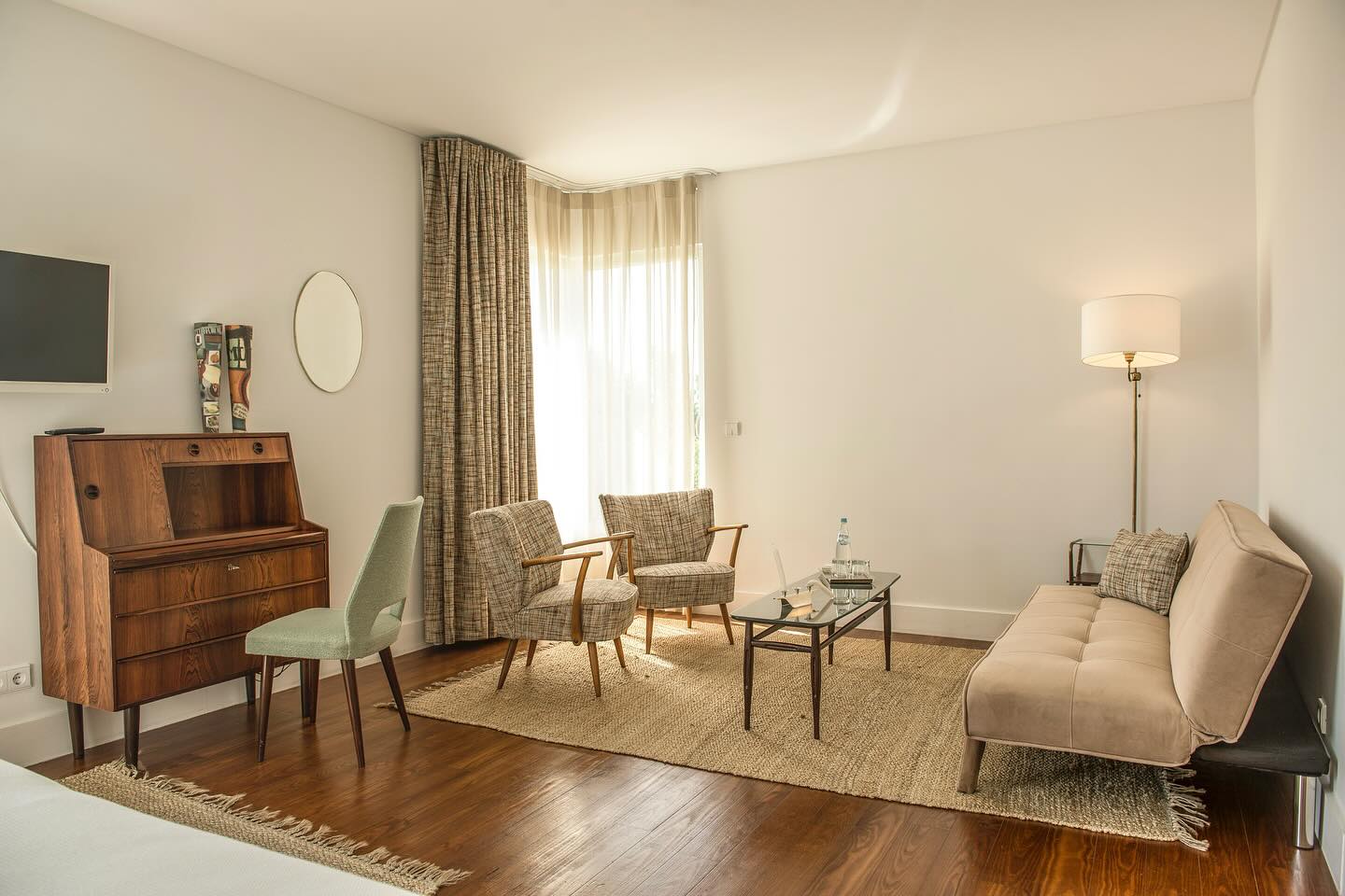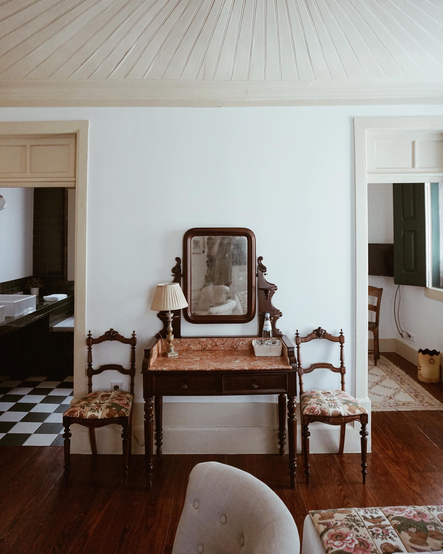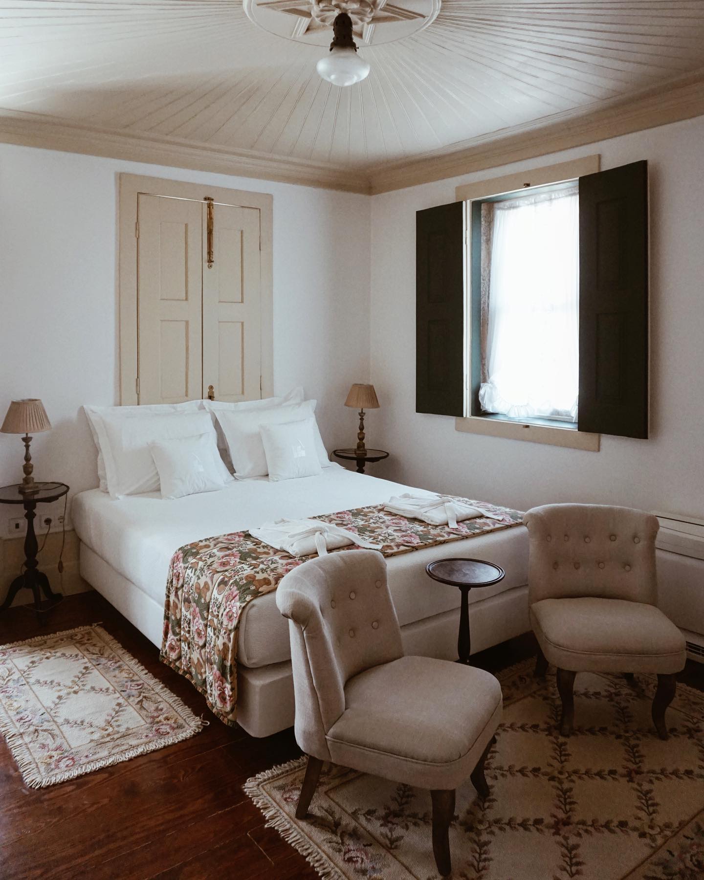 O destaque vai para a suíte Quarta da Belavista, com acesso direto ao jardim e à piscina, e janelas panorâmicas que prolongam as noites para ver o céu estrelado. Com uma decoração retro requintada, este quarto oferece a melhor vista de todas as suítes: jardim, piscina e Serra da Estrela.