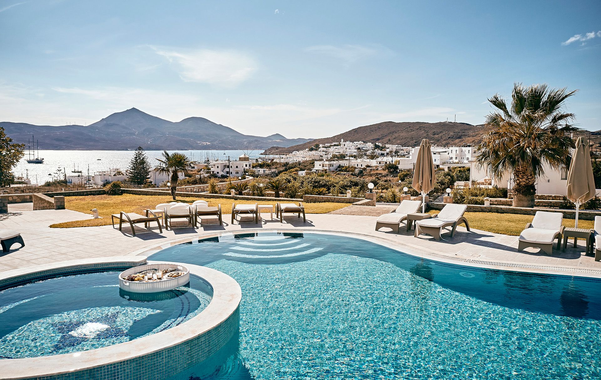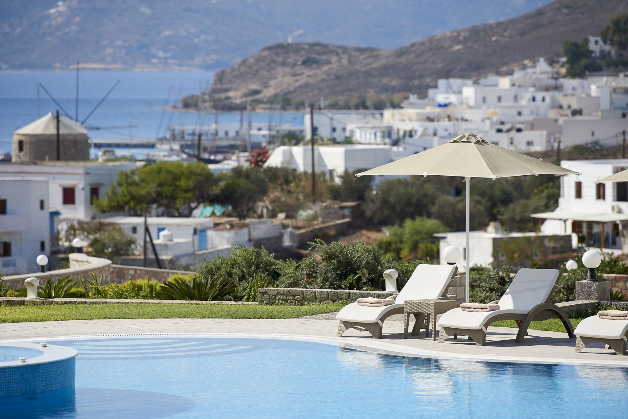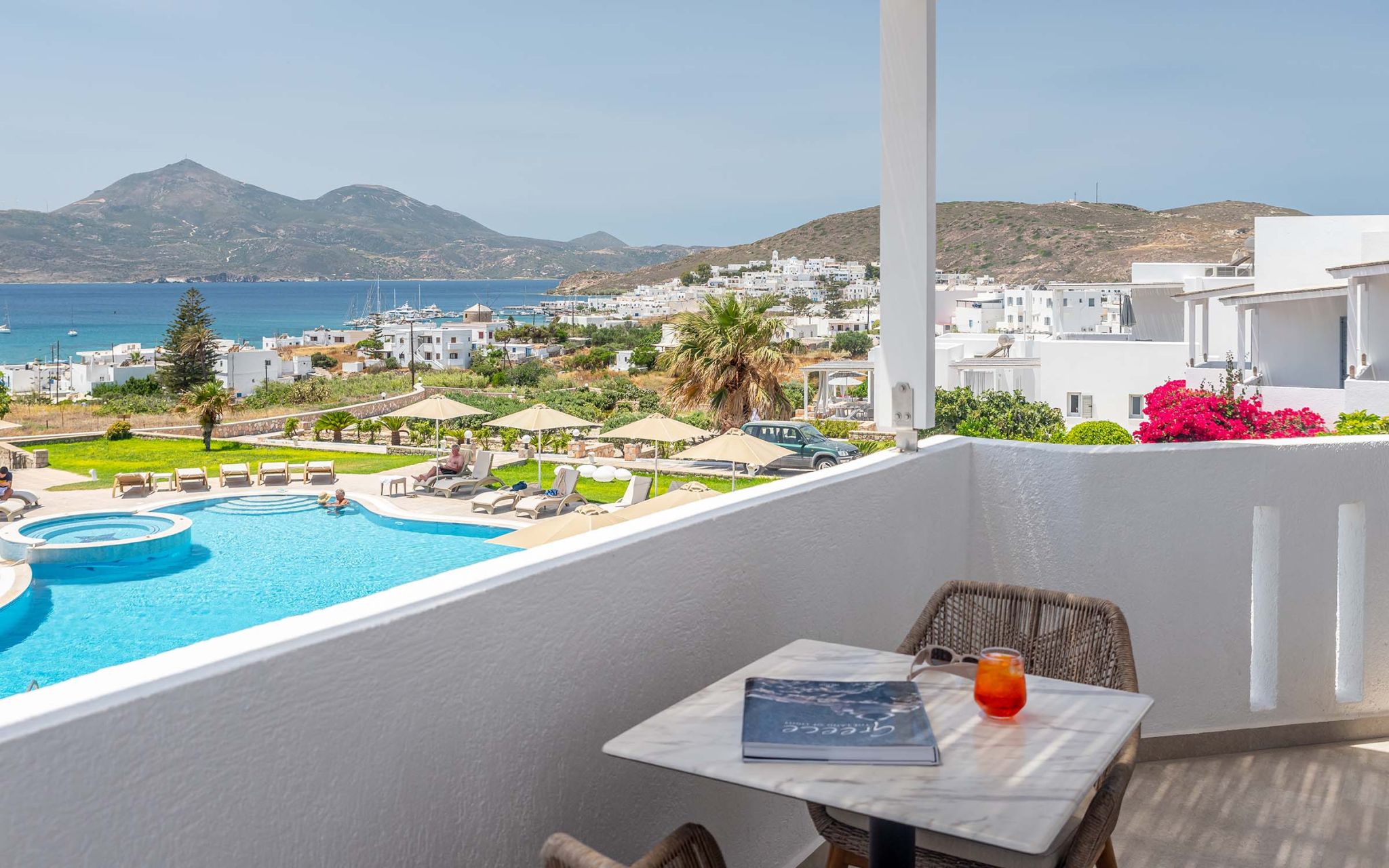 Ana Garcia Martins está instalada no Santa Maria Village Resort & Spa, hotel de quatro estrelas localizado em Adamas. Construído numa encosta, oferece quartos inspirados na estética cicládica, alguns com jacuzzi privado e vista para o mar, além de uma piscina exterior perfeita para o pôr do sol. Em setembro, os preços começam nos 270€ por noite. O pequeno-almoço buffet com produtos locais e o spa dedicado a terapias de relaxamento completam o programa de bem-estar.