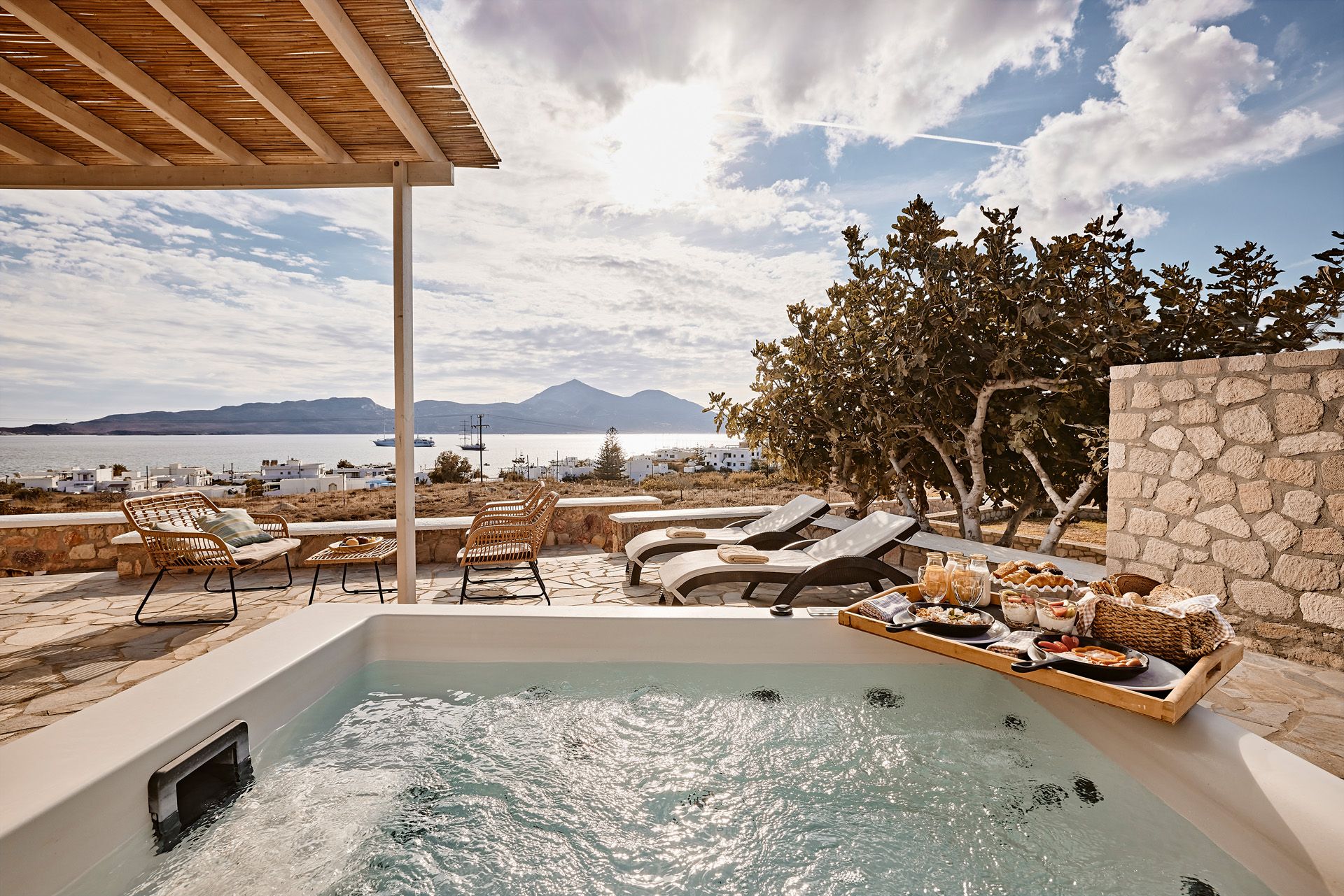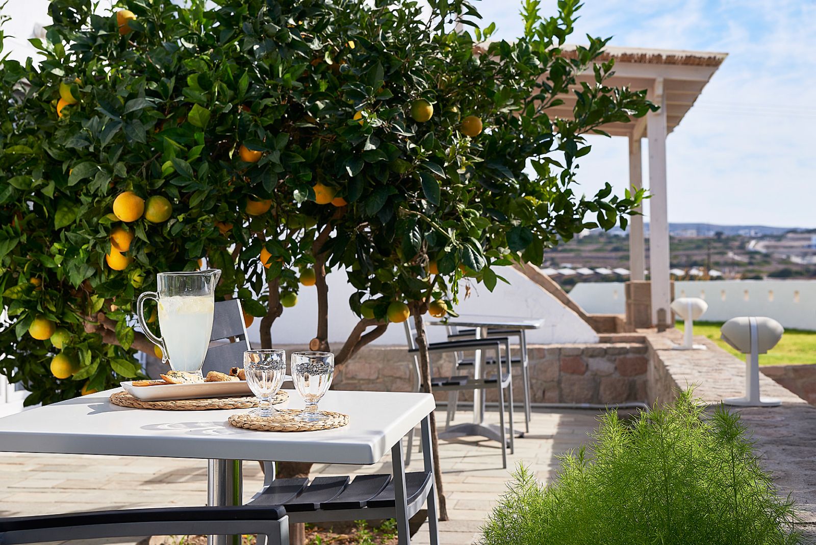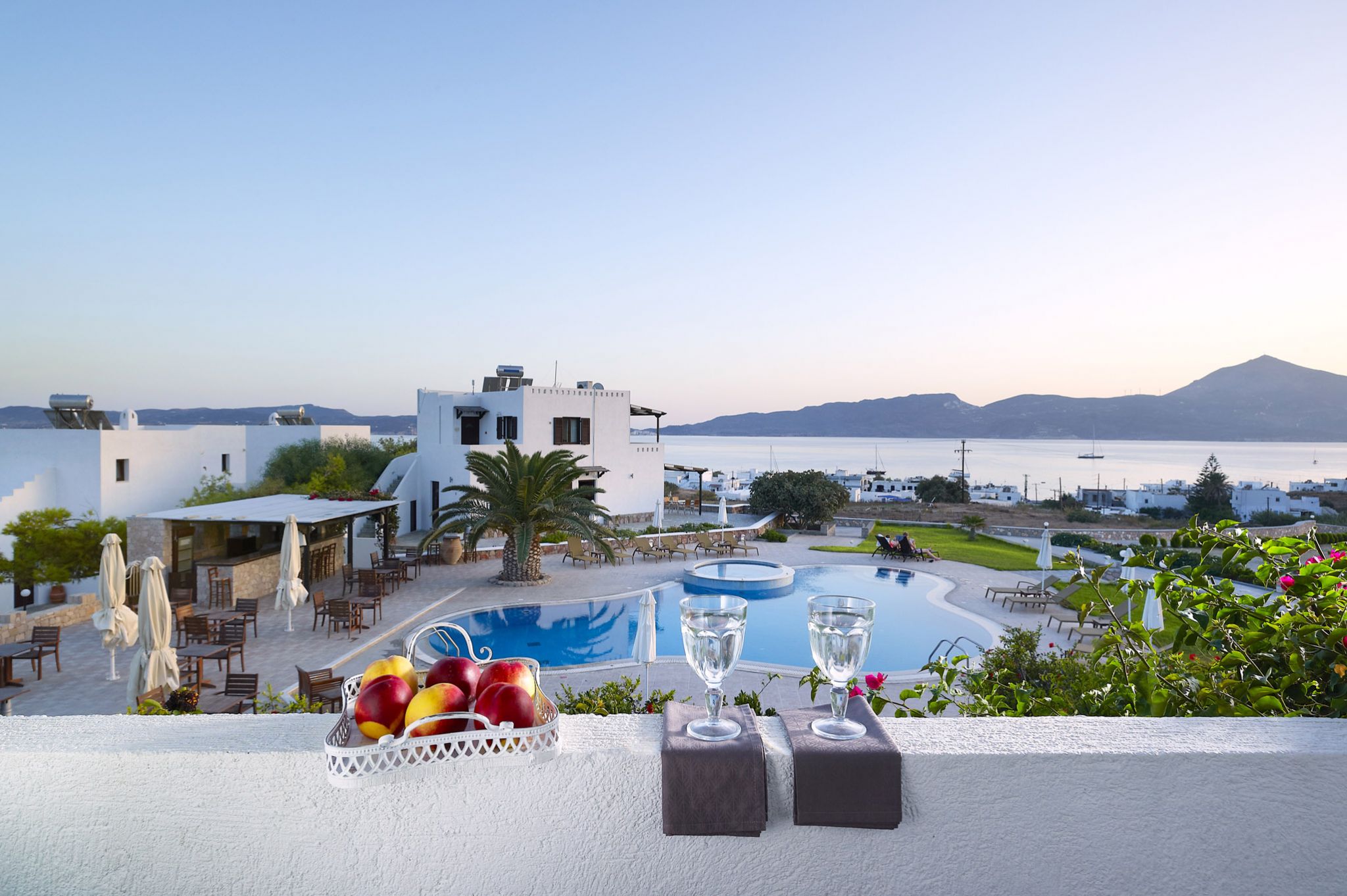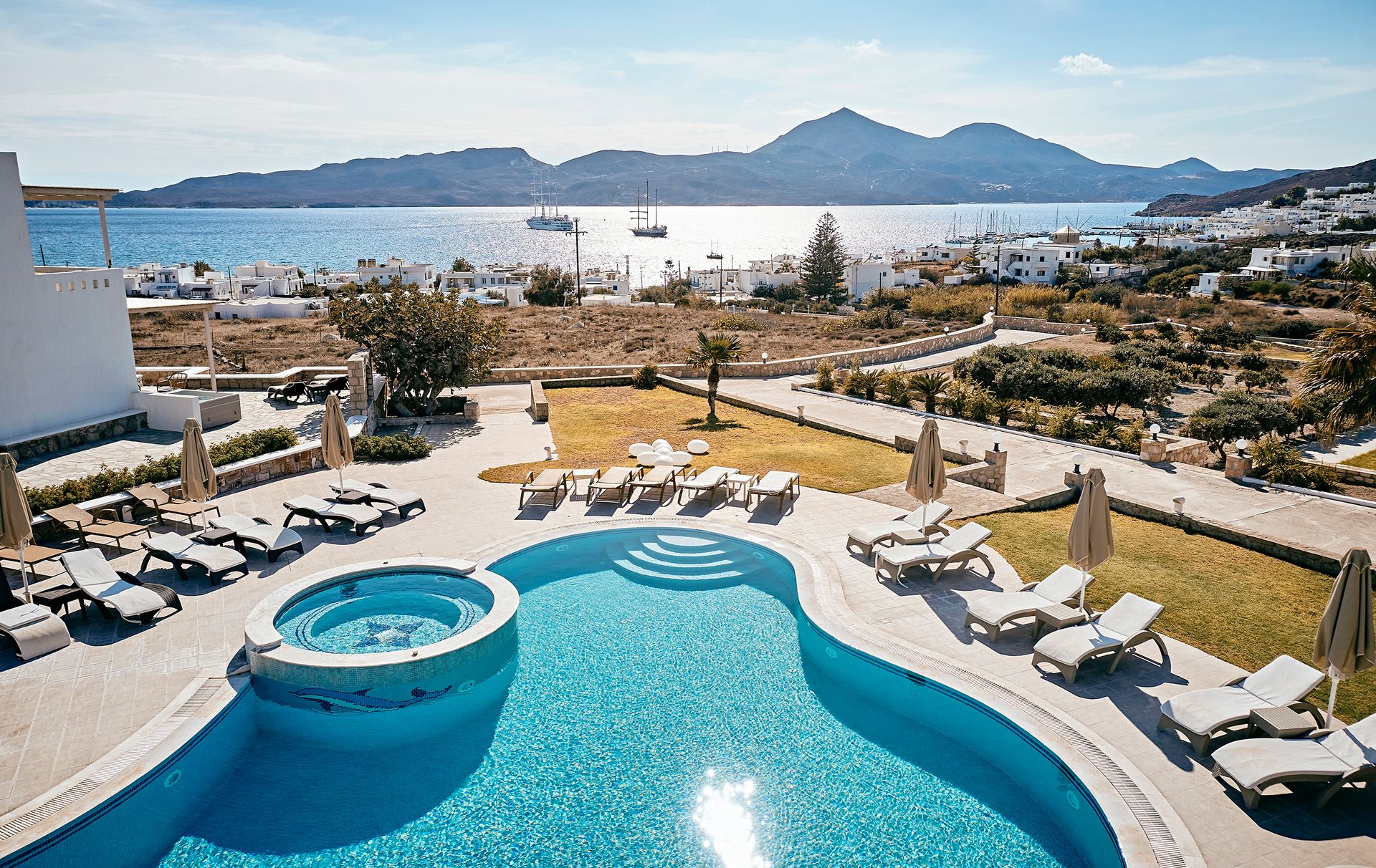 Ana Garcia Martins está instalada no Santa Maria Village Resort & Spa, hotel de quatro estrelas localizado em Adamas. Construído numa encosta, oferece quartos inspirados na estética cicládica, alguns com jacuzzi privado e vista para o mar, além de uma piscina exterior perfeita para o pôr do sol. Em setembro, os preços começam nos 270€ por noite. O pequeno-almoço buffet com produtos locais e o spa dedicado a terapias de relaxamento completam o programa de bem-estar.