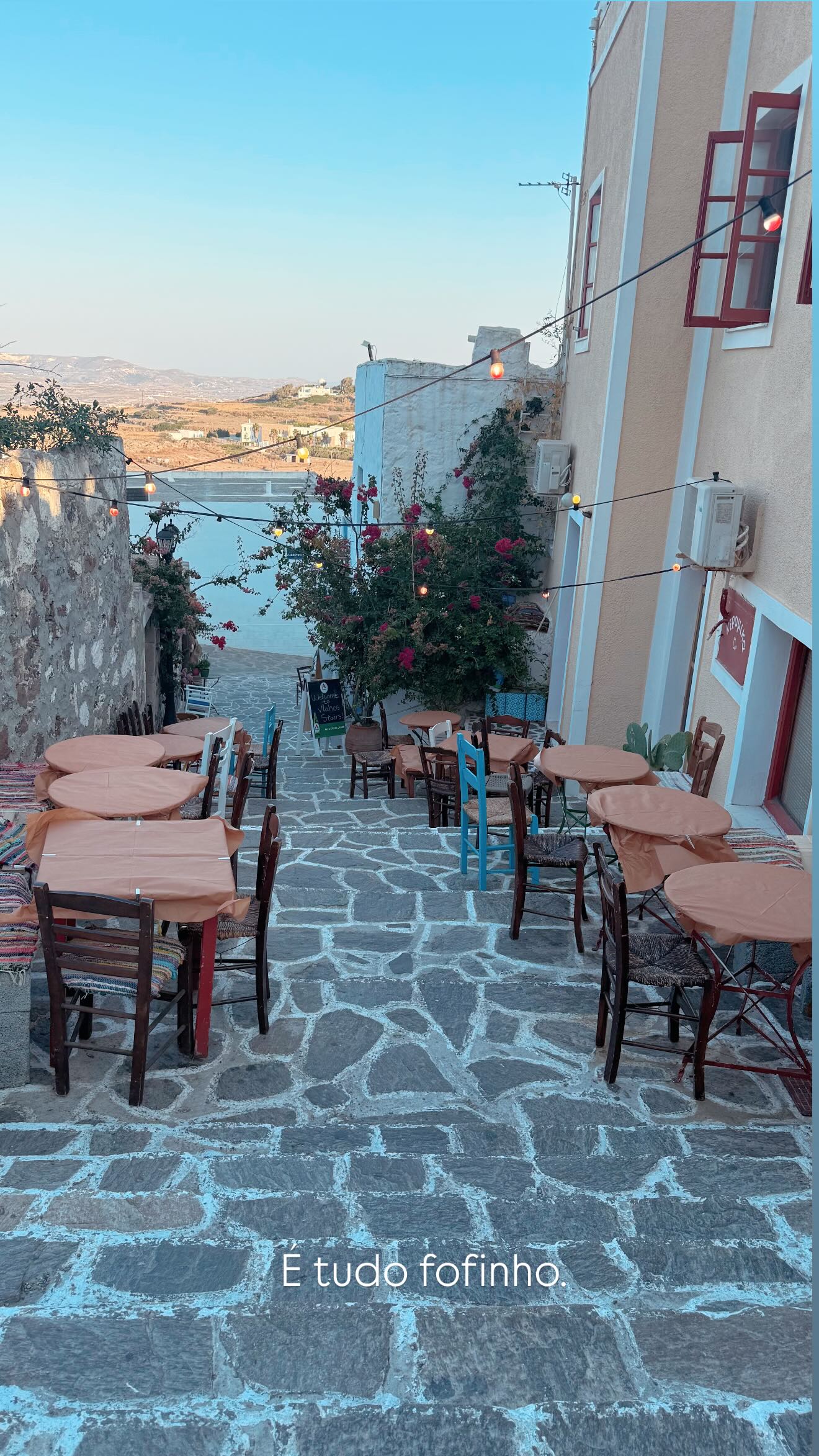 Nas suas partilhas, destacam-se paragens obrigatórias para quem visita Milos. Em Plaka, a capital da ilha, as ruas estreitas ladeadas de casas caiadas com janelas coloridas são um convite a passeios sem pressa, sempre com vista para o mar Egeu. Foi também aí que Ana Garcia Martins mostrou momentos no restaurante Archontoula, conhecido pela comida tradicional grega servida em ambiente familiar.