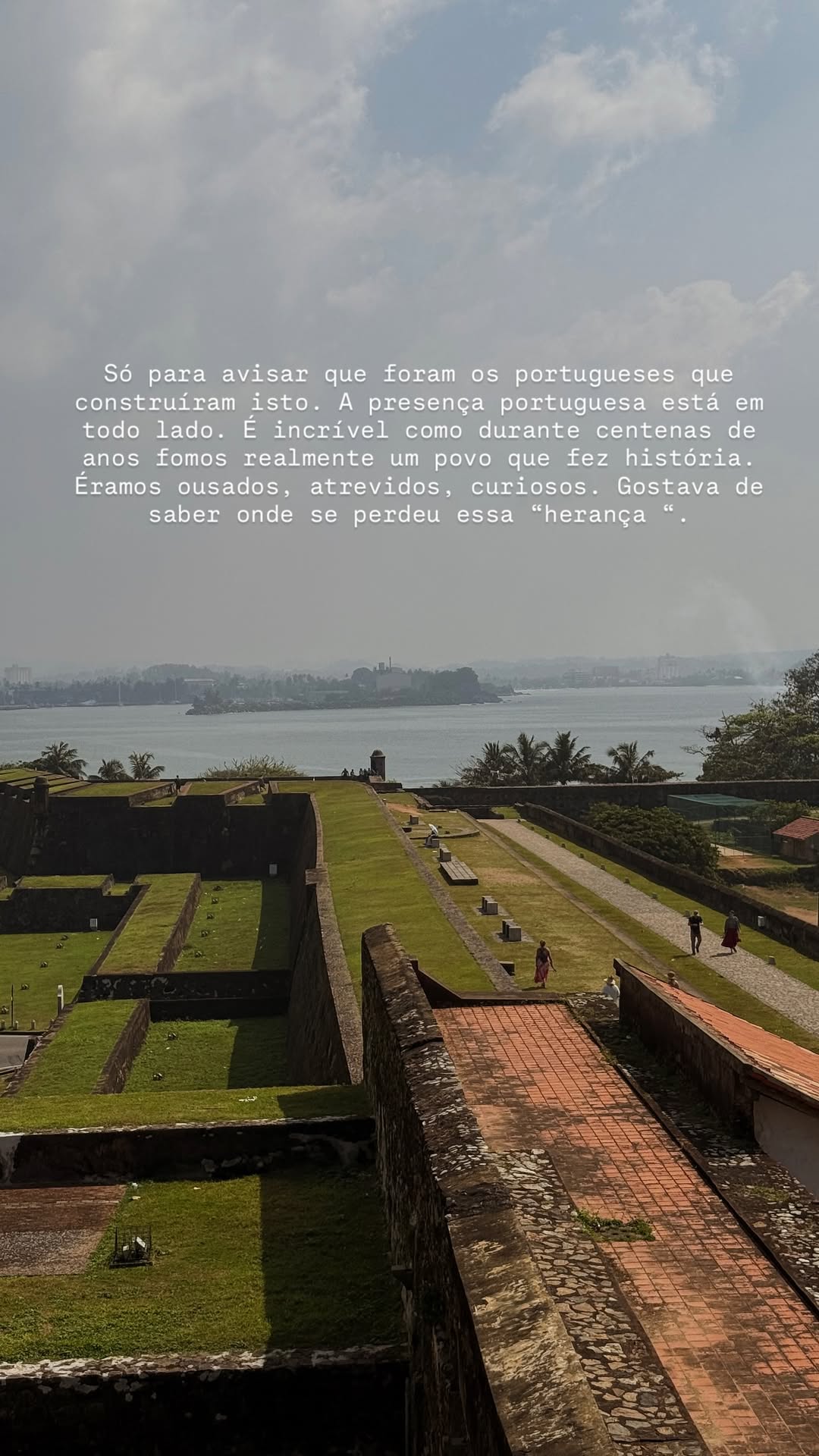 Com temperaturas a rondar os 29ºC e humidade a 8o%, Cristina Ferreira começa por confessar: "é tudo lindo mas está um calor que não se aguenta". Relembrando os tempos em que leccionou História a alunos no ensino secundário, antes de se tornar uma estrela de televisão, a apresentadora da TVI partilhou uma imagem do forte de Galle, relembrando a passagem dos navegadores portugueses por aquele país. "Só para avisar que foram os portugueses que construíram isto. A presença portuguesa está em todo o lado. É incrível como durante centenas de anos fomos realmente um povo que fez história. Éramos ousados, atrevidos, curiosos. Gostava de saber onde se perdeu essa 'herança'", escreveu.