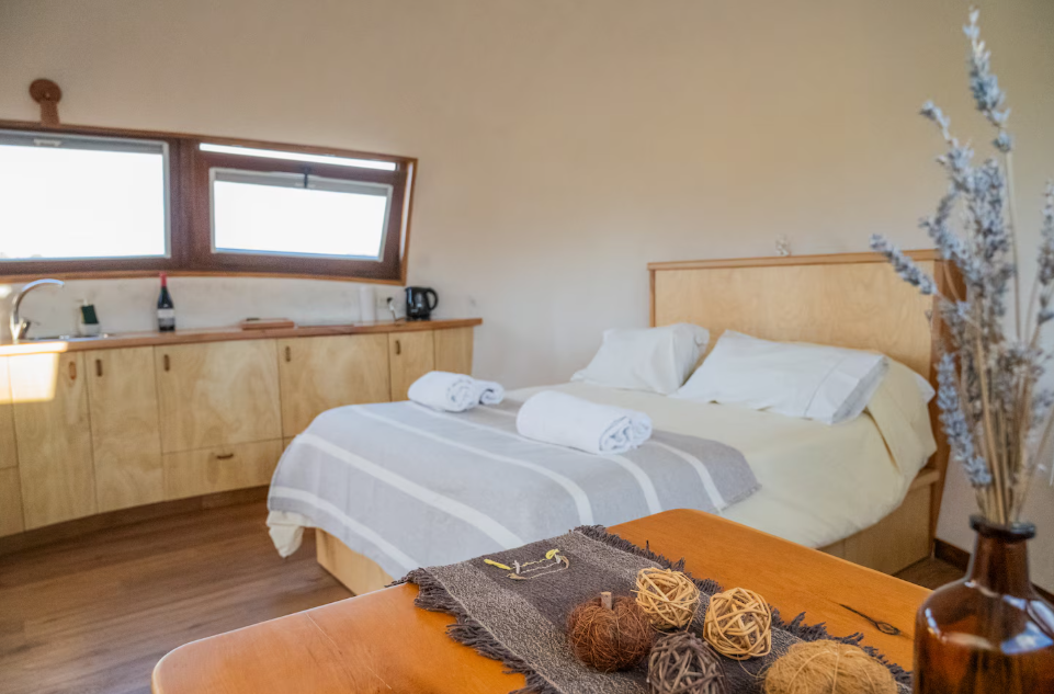 Com espaço para duas pessoas, este airbnb oferece todo o conforto num cenário de pura tranquilidade: jacuzzi ao ar livre, cozinha equipada, fogueira exterior e vistas deslumbrantes para a natureza da Patagónia. É o local ideal para quem procura descanso e natureza. Em fevereiro, uma noite neste refúgio pode custar cerca de 143,99€.